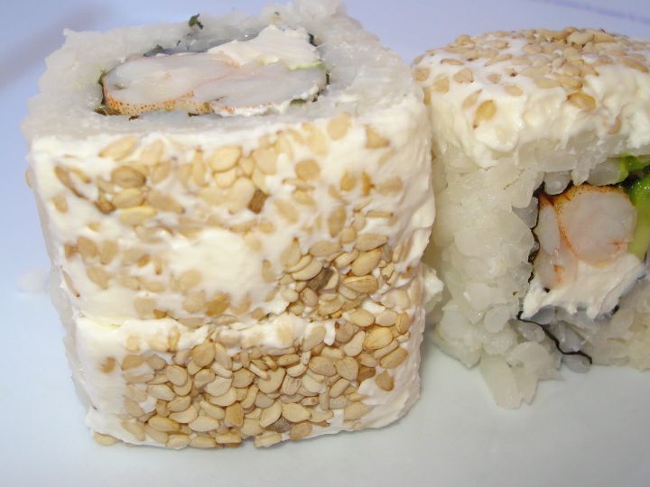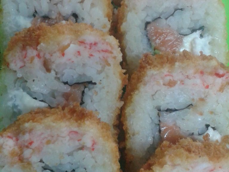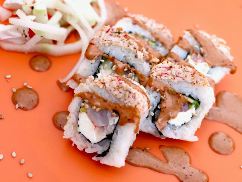 MAKI SUSHI ROLL PASTA TAMPICO AFUERA Y ADENTRO QUESO CREMA AGUACATE FRESCO O EMPANIZADO