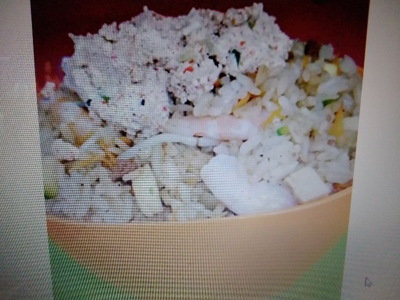 Arroz frito, queso crema, tampico e ingrediente a elección.