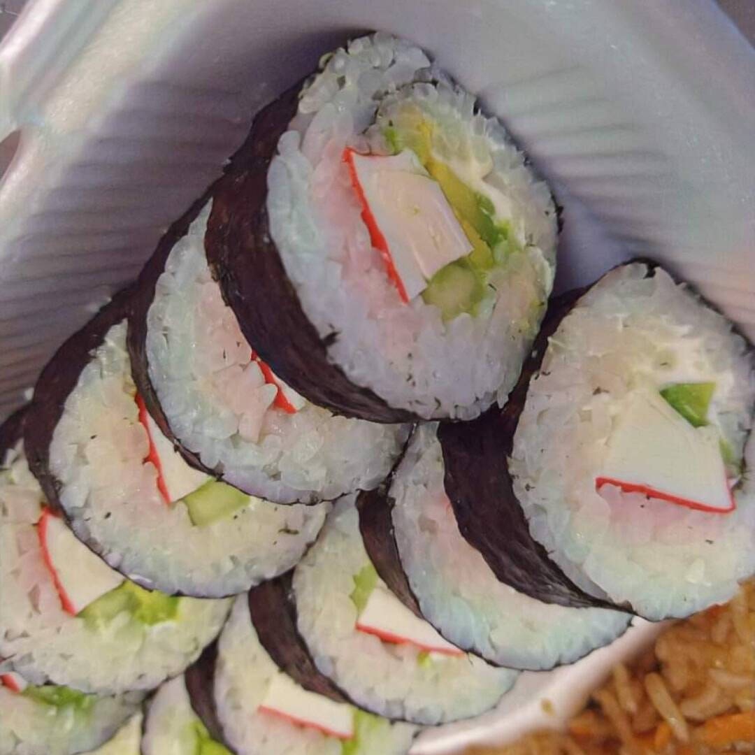 Enrollado en alga nori por fuera, por dentro queso crema, aguacate, pepino y surimi