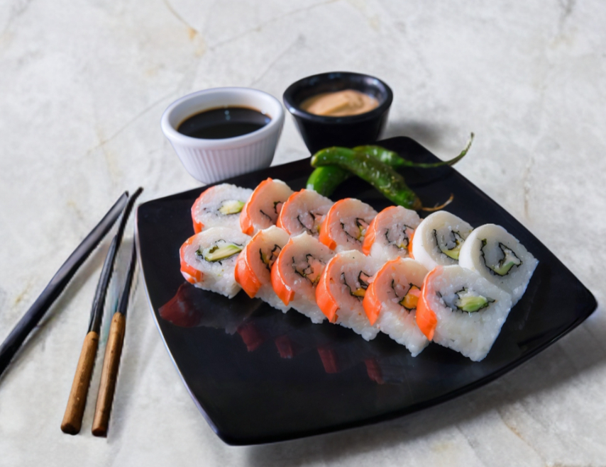 Relleno de surimi,aguacate y philadelphia y cubierto de surimi (puedes pedirlo empanizado)