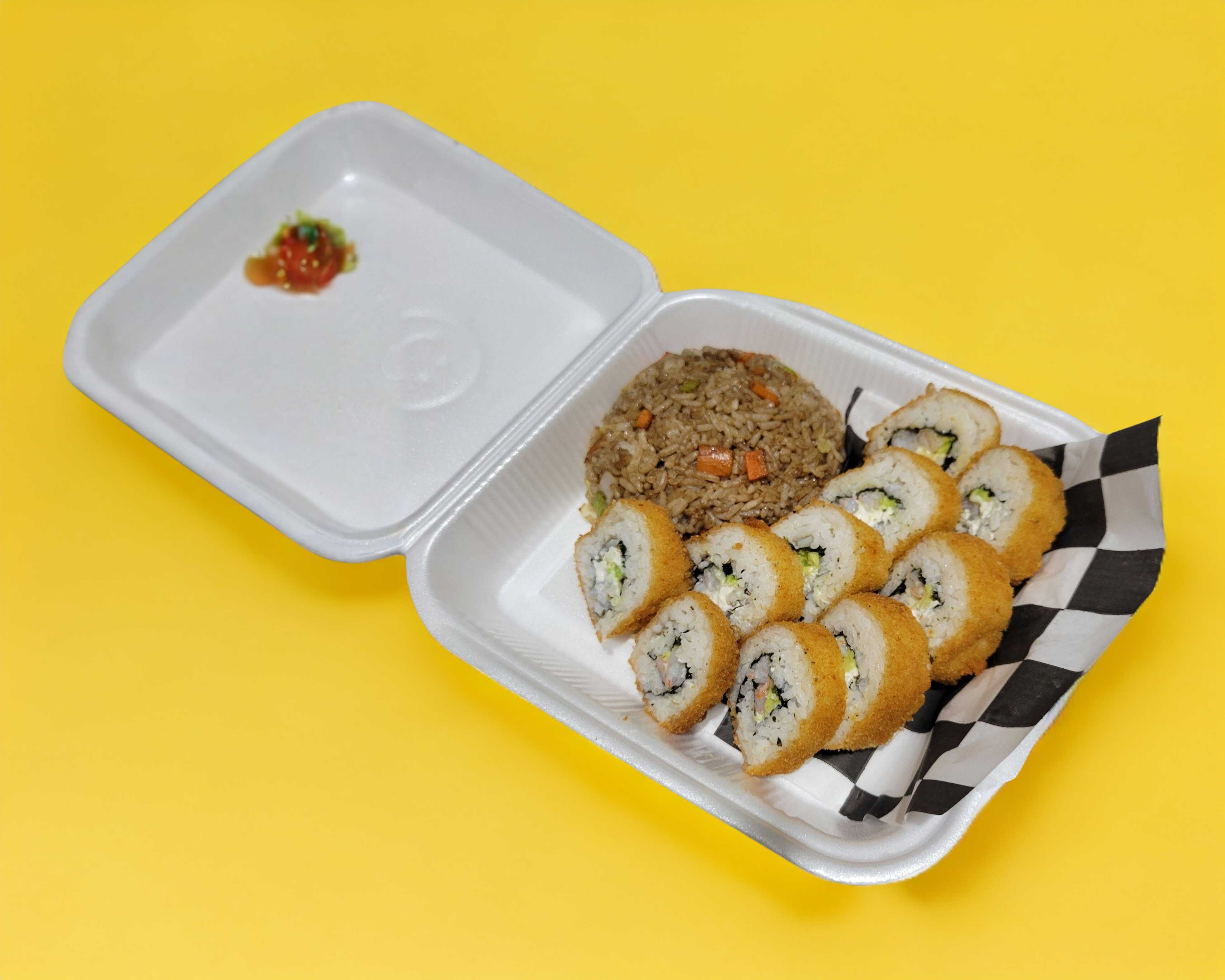 Rollo a eleccion con tu proteina favorita + un arroz frito con verduras!