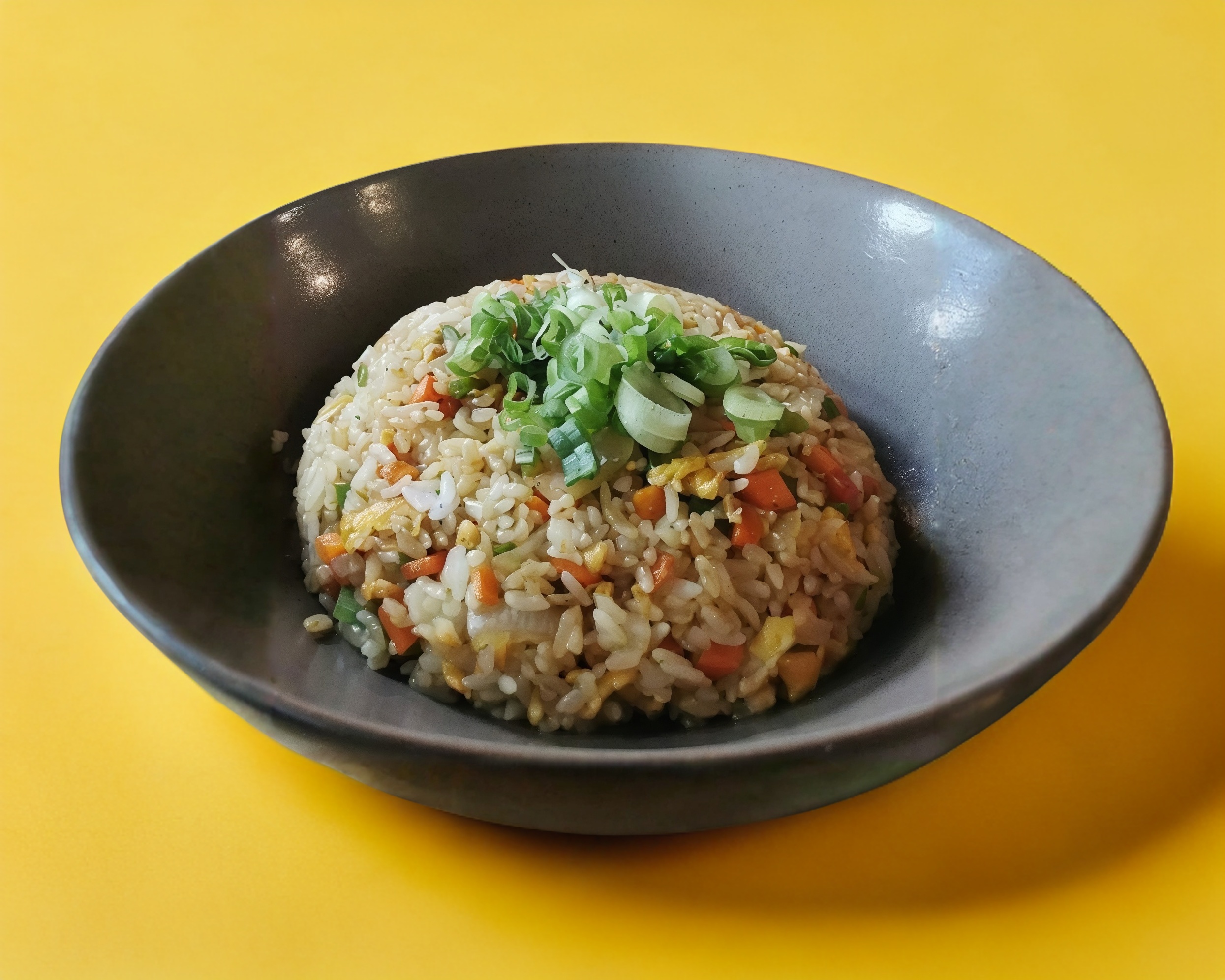 Arroz frito con verduras (zanahoria, cebolla y calabacita).