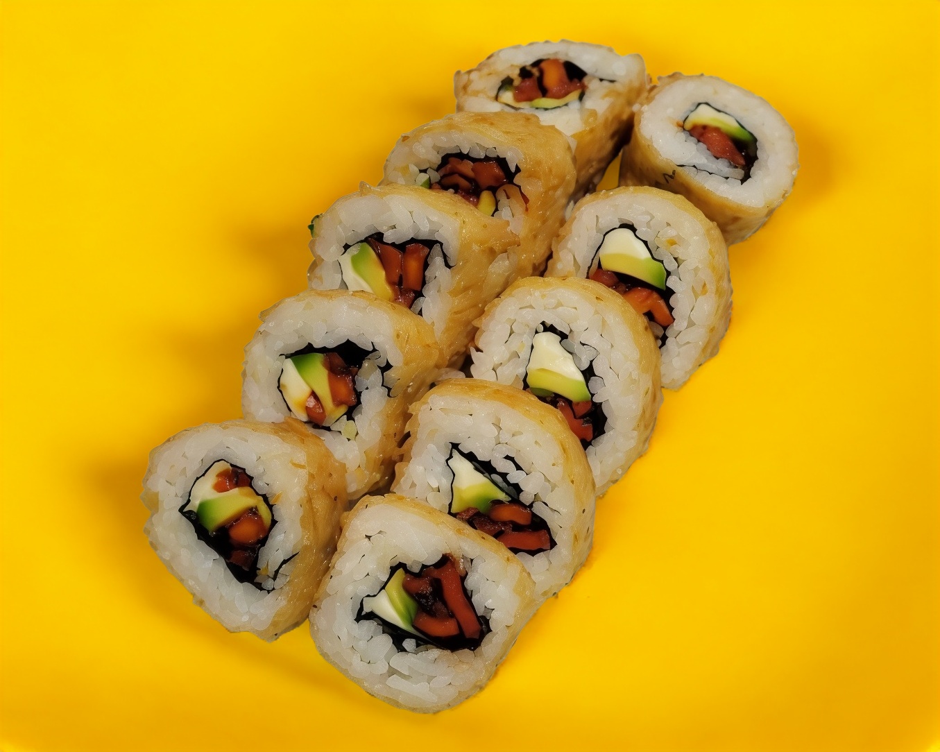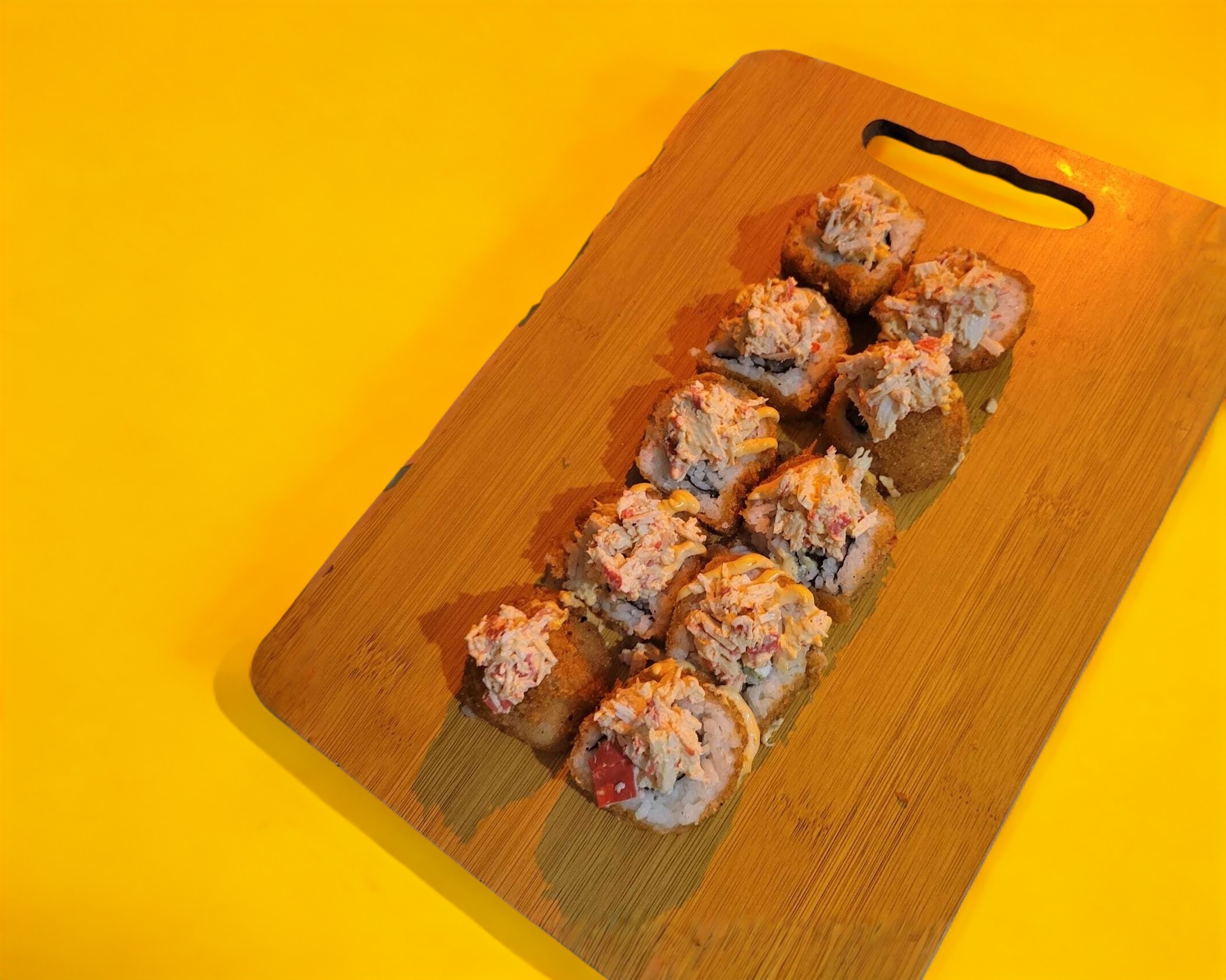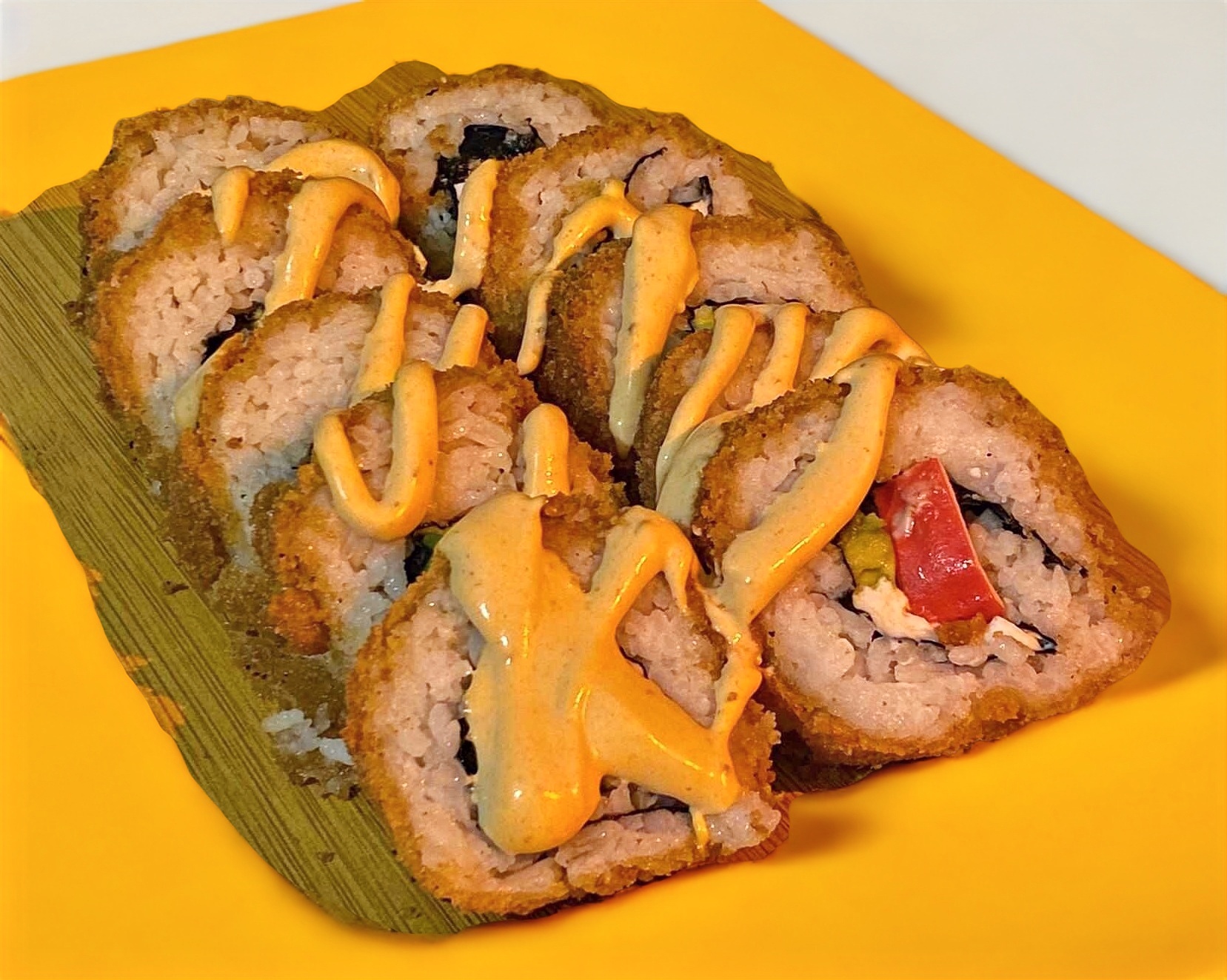 Rollo relleno de tampico (surimi con mayonesa y chipotle), queso crema y aguacate!