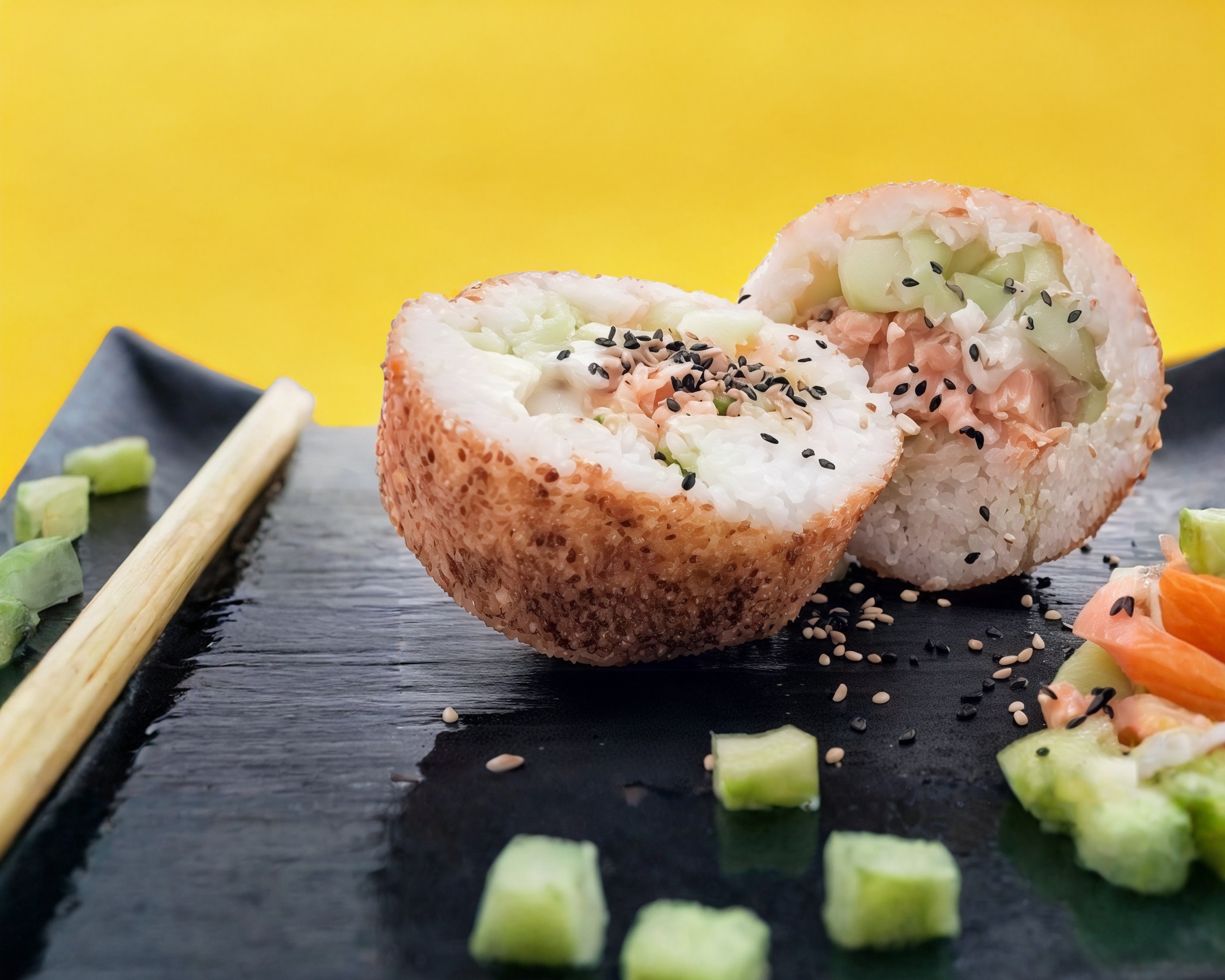 Escoge tus rollos y cómo los quieres: 2 rollos (4 mitades o 20 rollitos). Incluye 2 salsas por cada orden de 10 bocados.