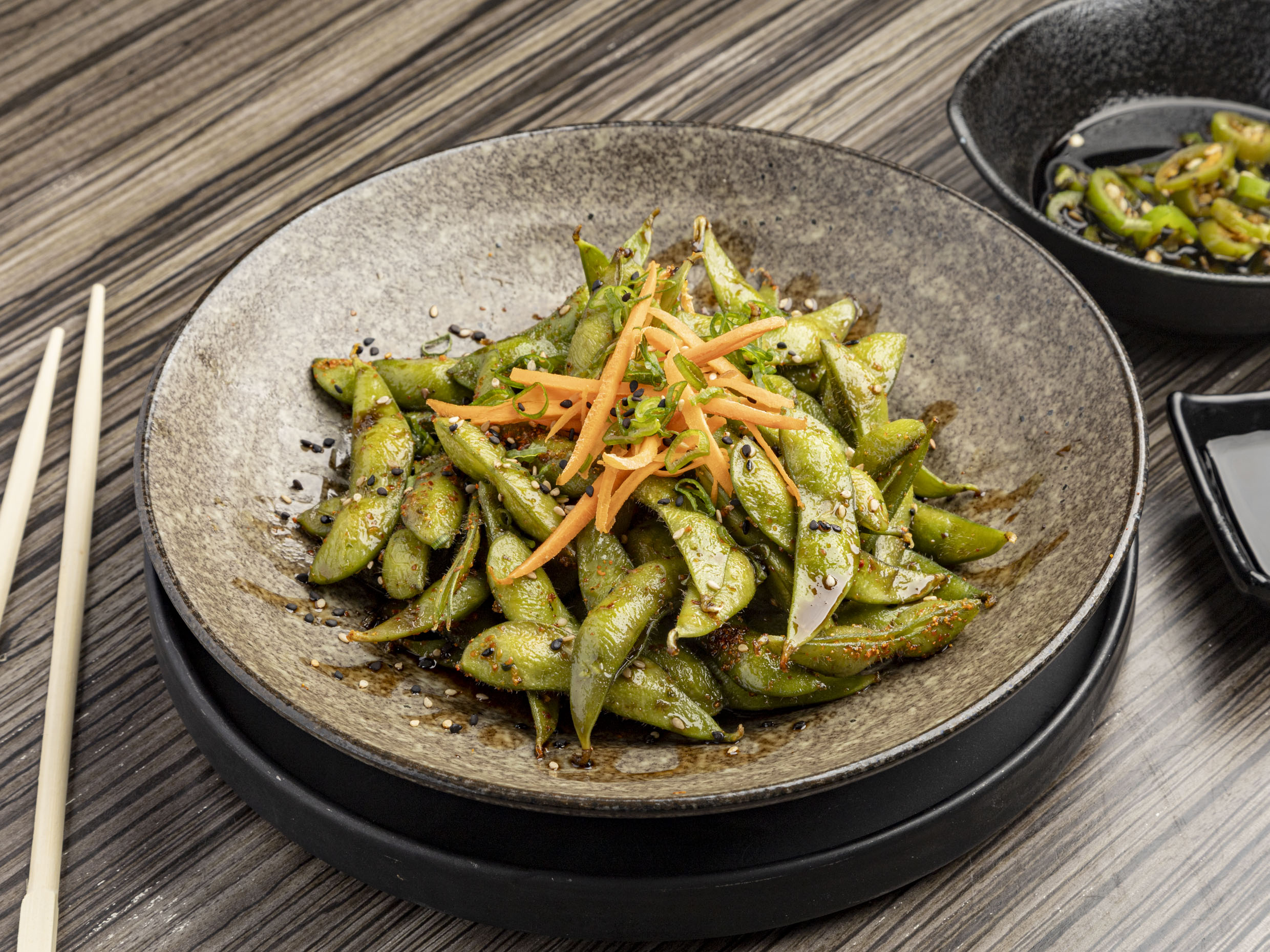 Deliciosa botana, vainas de saja hervidas y salteadas con un ligero picante y sal de Colima.