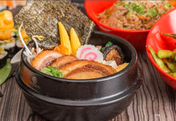 Ingredientes: pork bely, elote baby, shita Ke, setas, alga, naruto, huevo duro- cebollín.