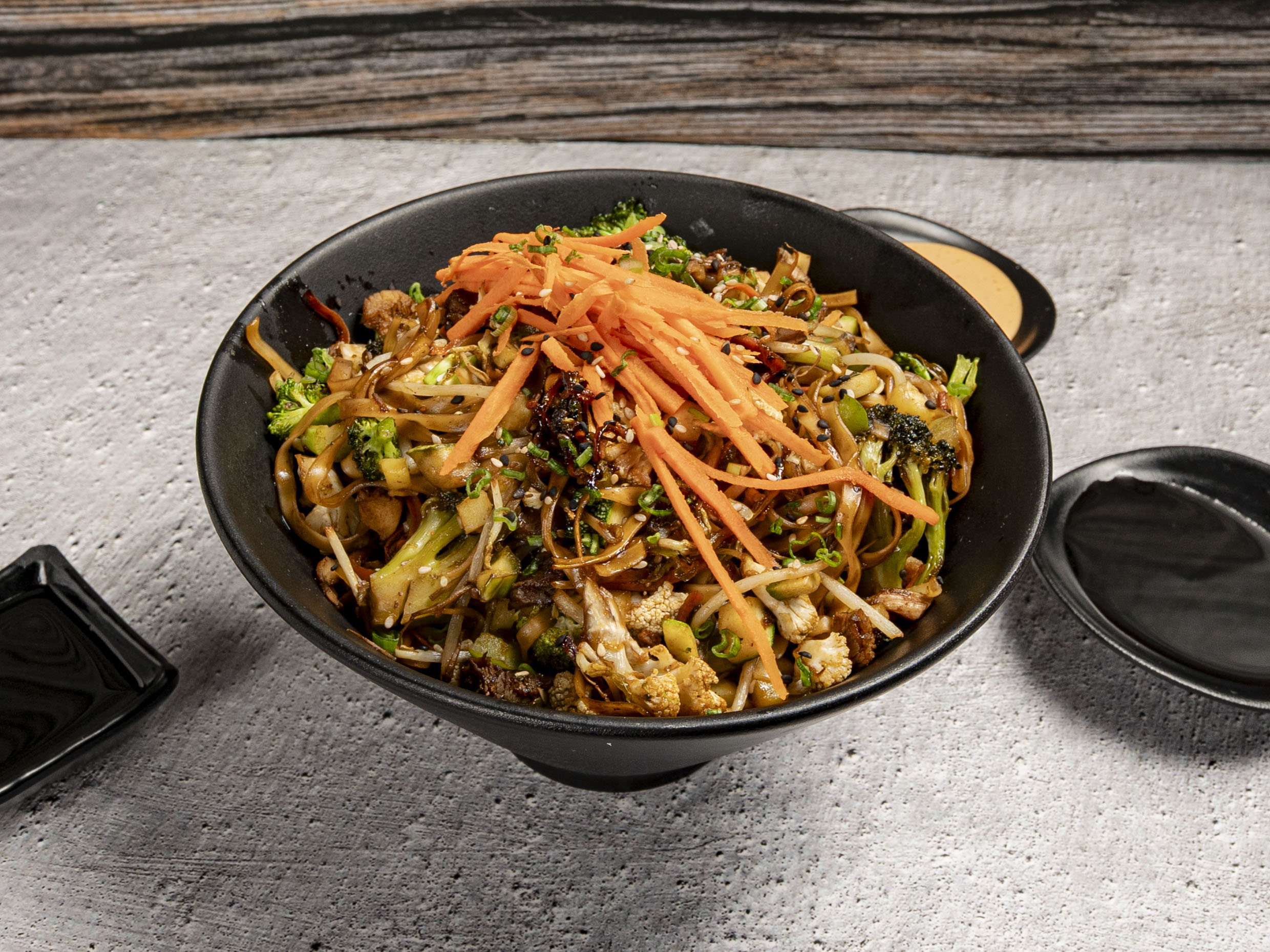 Noodles hechos a base de huevo, con camarón, arrachera, pollo,verduras, soya y salsa teriyaki.