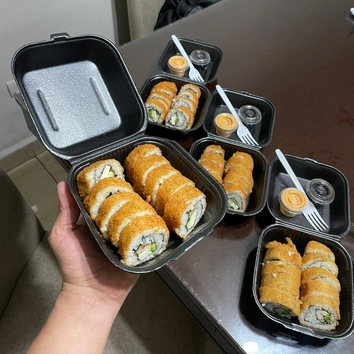 Rollo JUMBO con extra de arroz, con mas surimi, mas queso crema, mas aguacate y es empanizado.