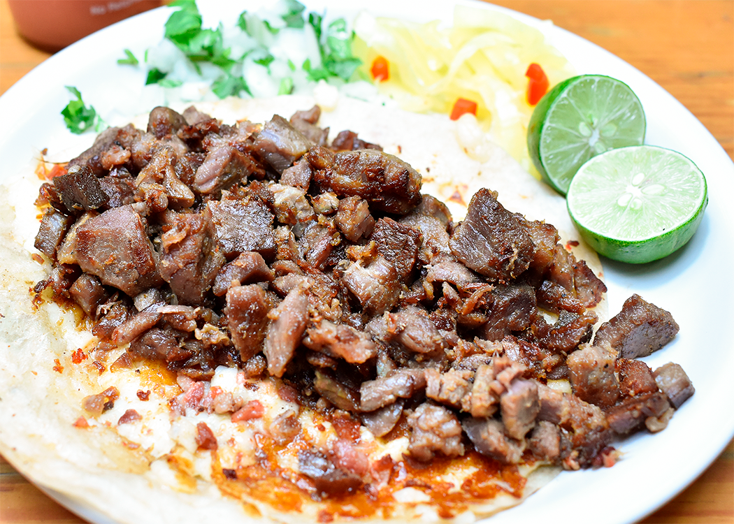 CARNE DE RES GUISADA CON TROZOS DE TOCINO, SALCHICHA ASADA, CEBOLLA Y POBLANO, CON NUESTRO SAZONADOR ESPECIAL, LA COMBINACIÓN PERFECTA. INCLUYEN 5 TORTILLAS, SALSA VERDE, ROJA, CEBOLLA CON CILANTRO Y LIMONES.