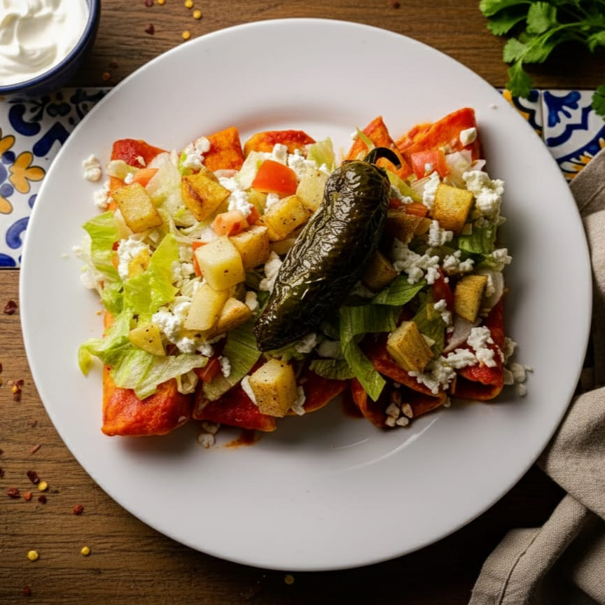 Enchiladas Rojas con salsa de chile Guajillo, rellenas de queso.