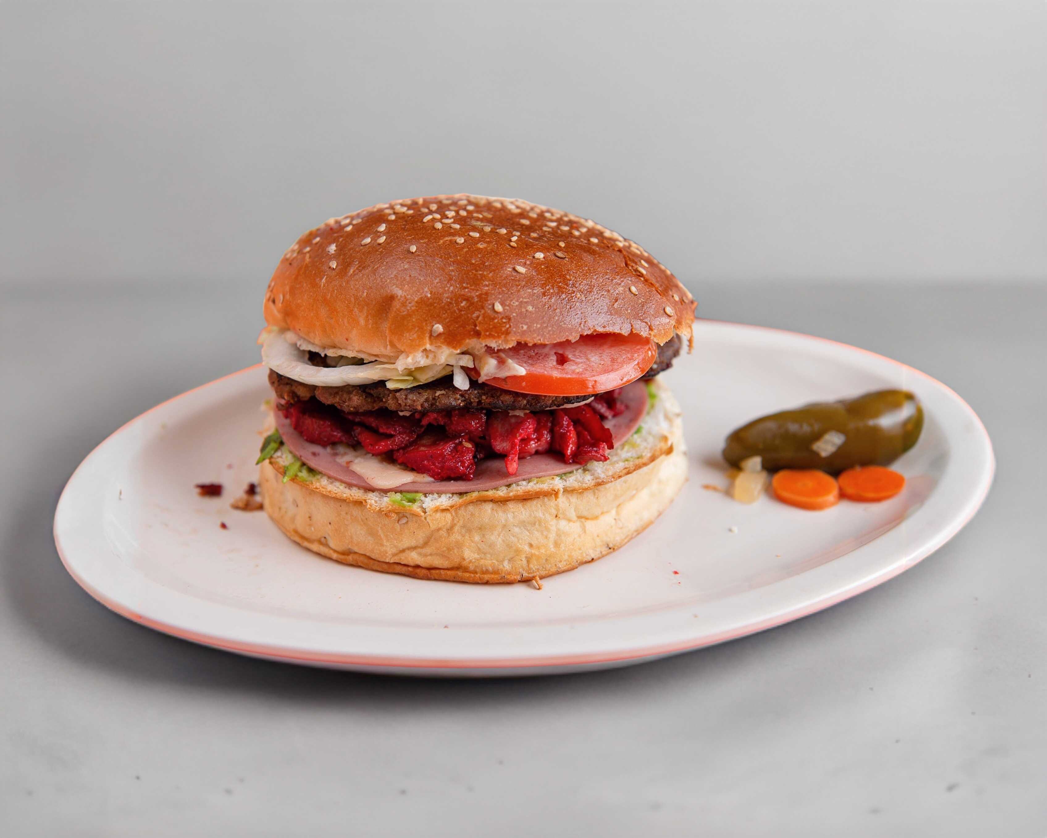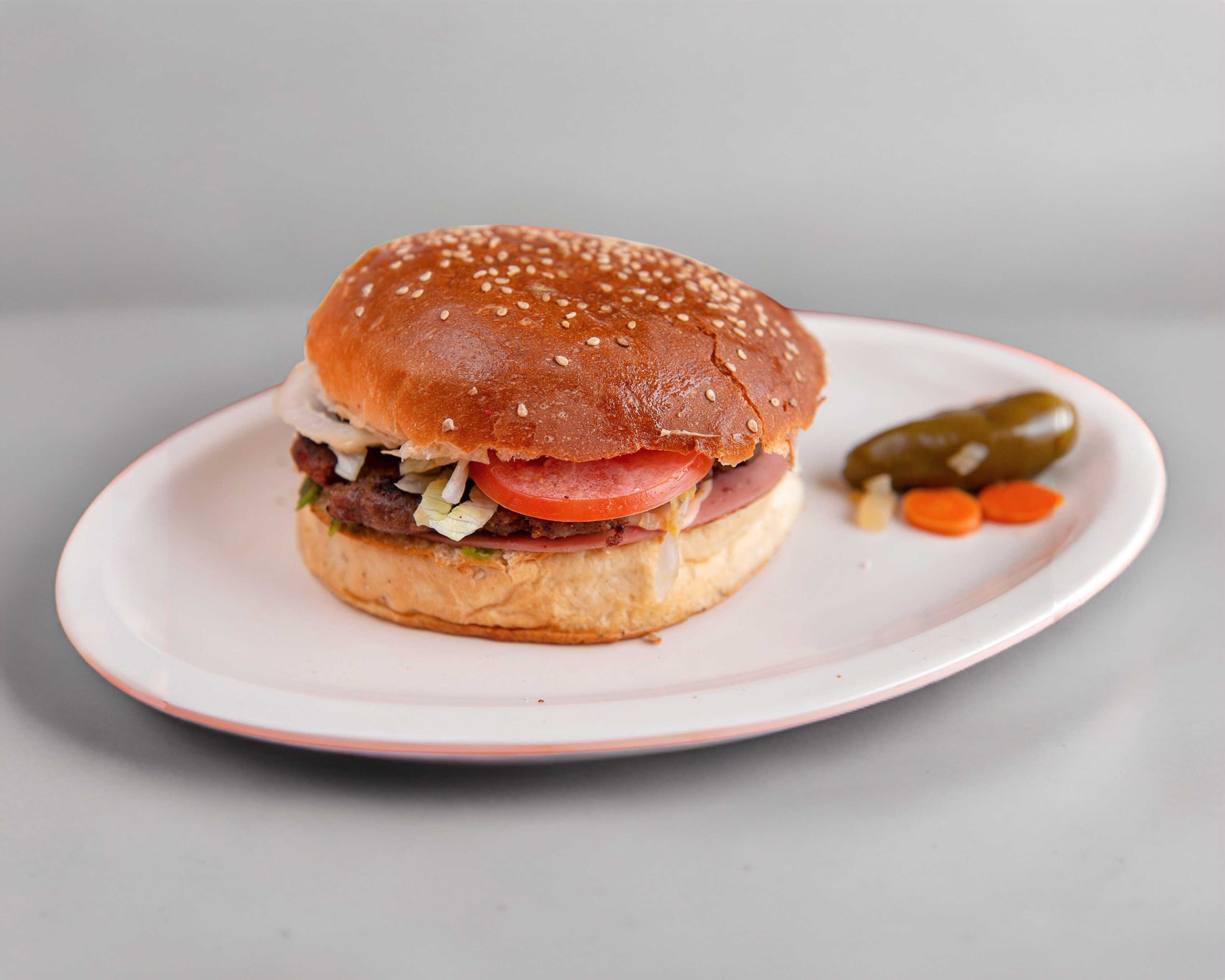 Carne casera 100%, jamón, queso, aguacate, lechuga, tomate, cebolla, aderezo y cátsup.