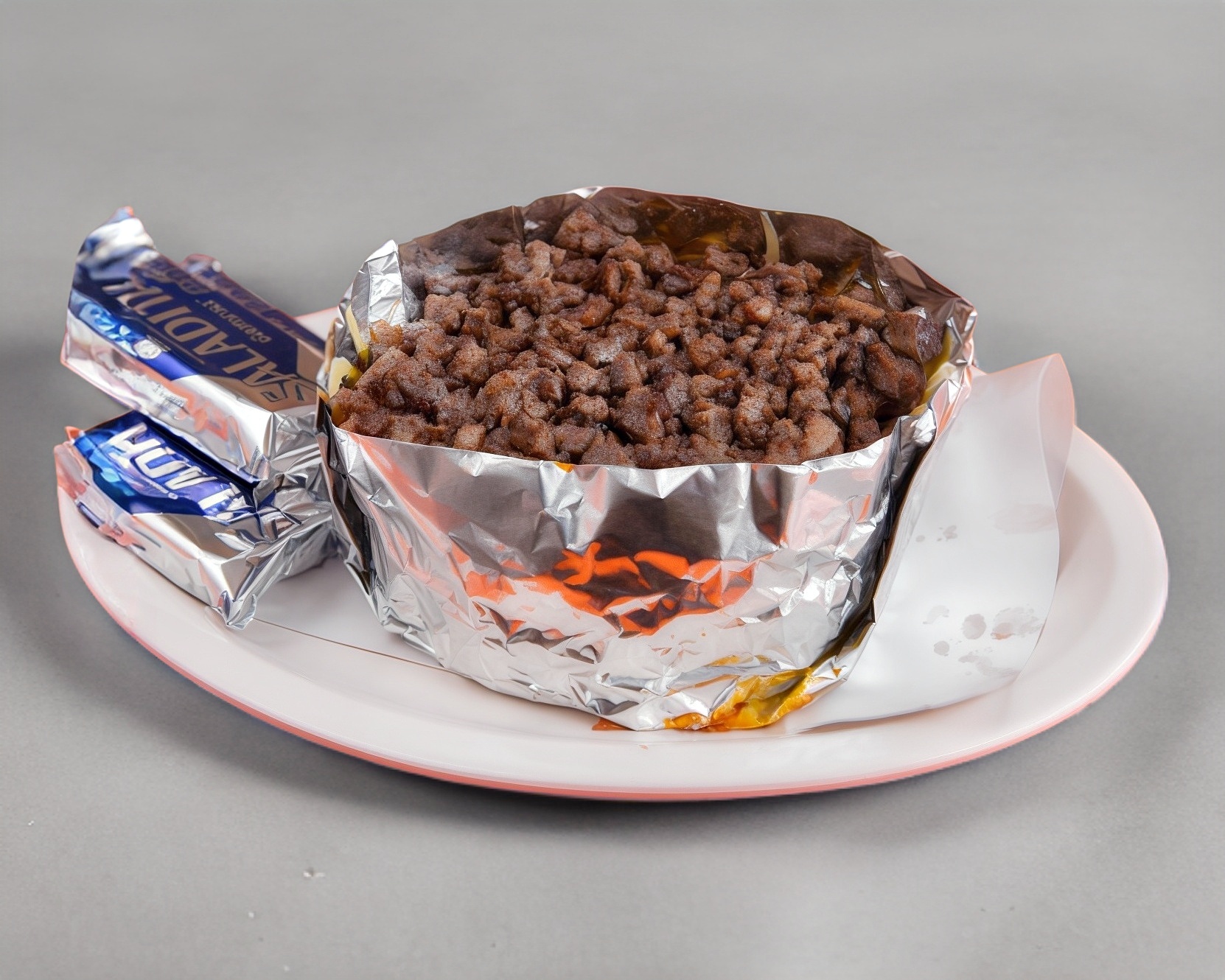 Papa asada con queso amarillo, queso asadero, mantequilla y carne de bistec.