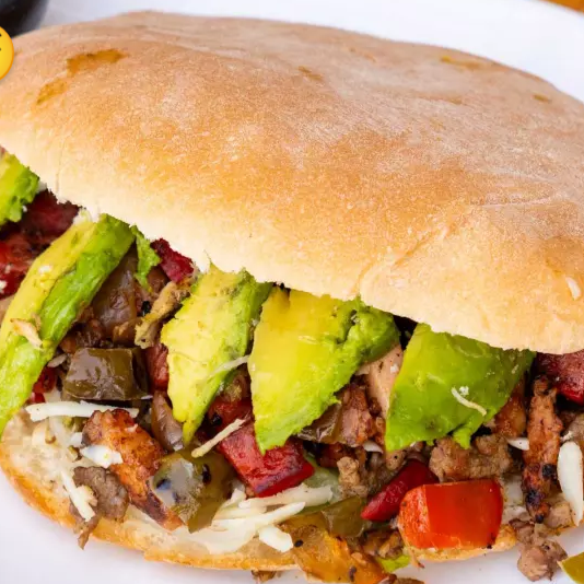 torta mixta carne de res , carne de trompo ,aguacate ,salsa y limones