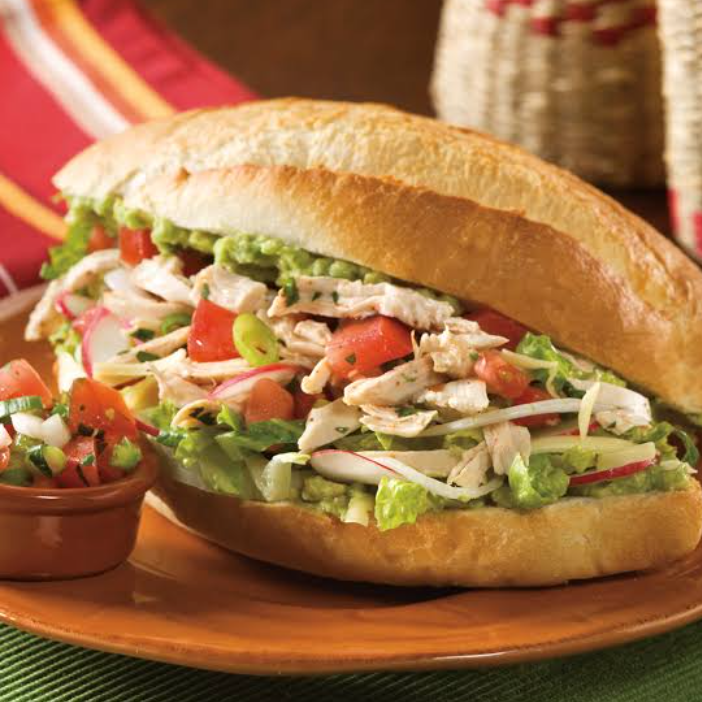 pechuga de pollo ,aguacate ,lechuga y aderezos