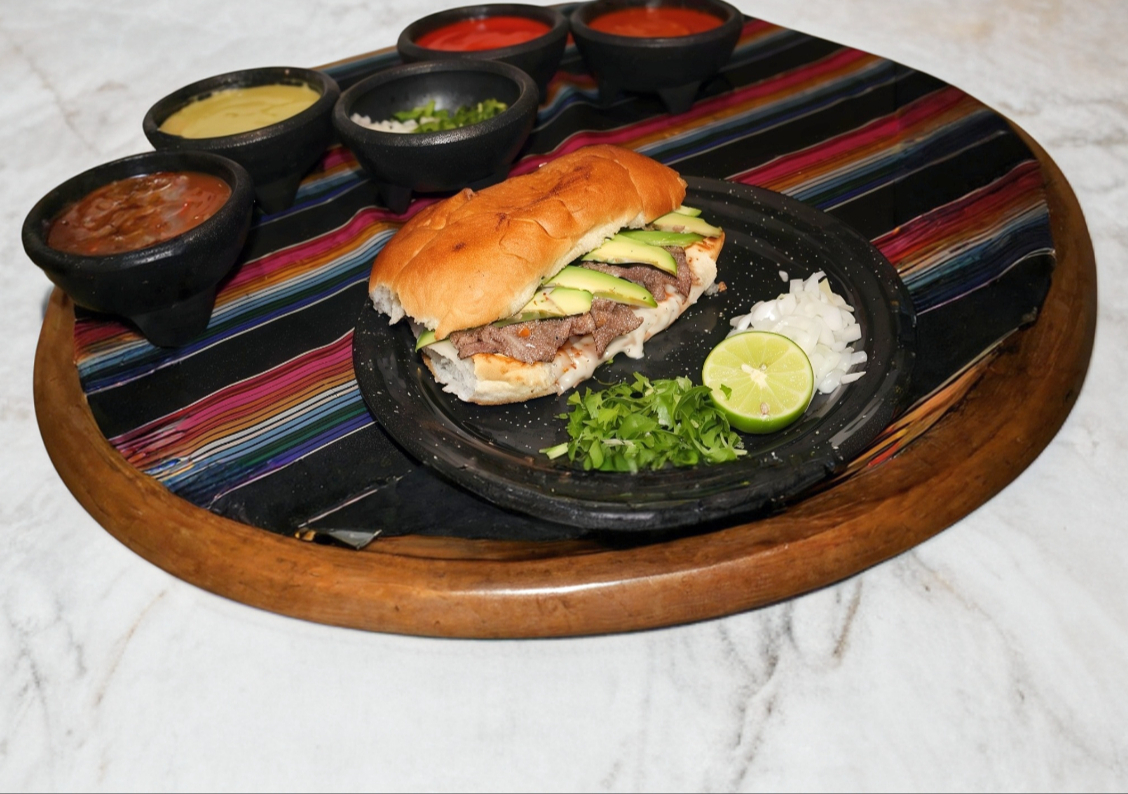Tortilla de Harina gigante con carne asada ,aguacate y queso.