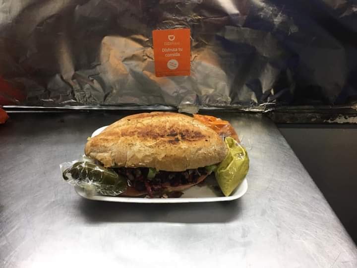 Ingredientes: Pan (Telera), carne de bistec (Rebanada) y trompo (Rebanada), aguacate, lechuga, queso (Rayado) asadero, mayonesa. (Porción Personal)