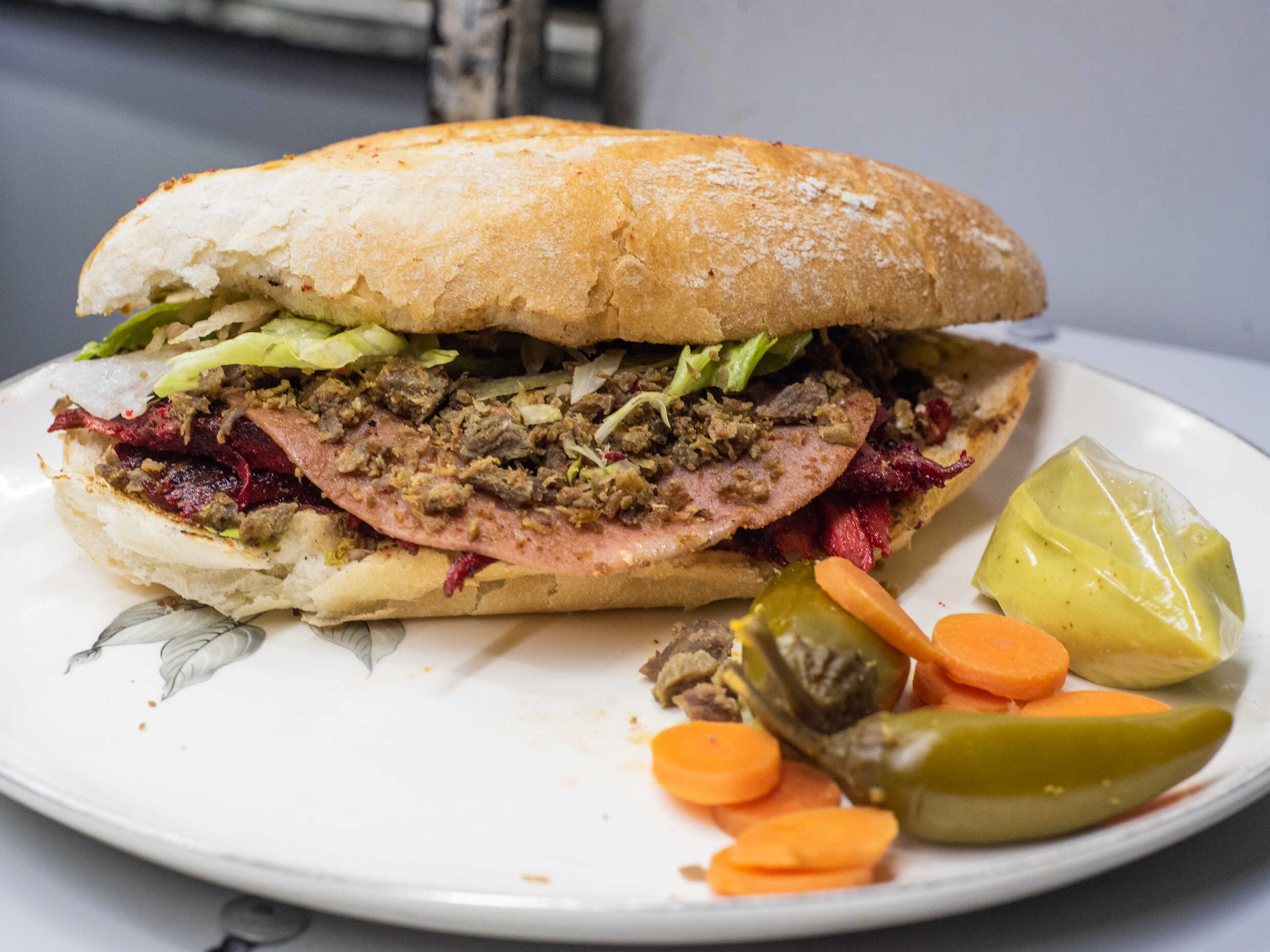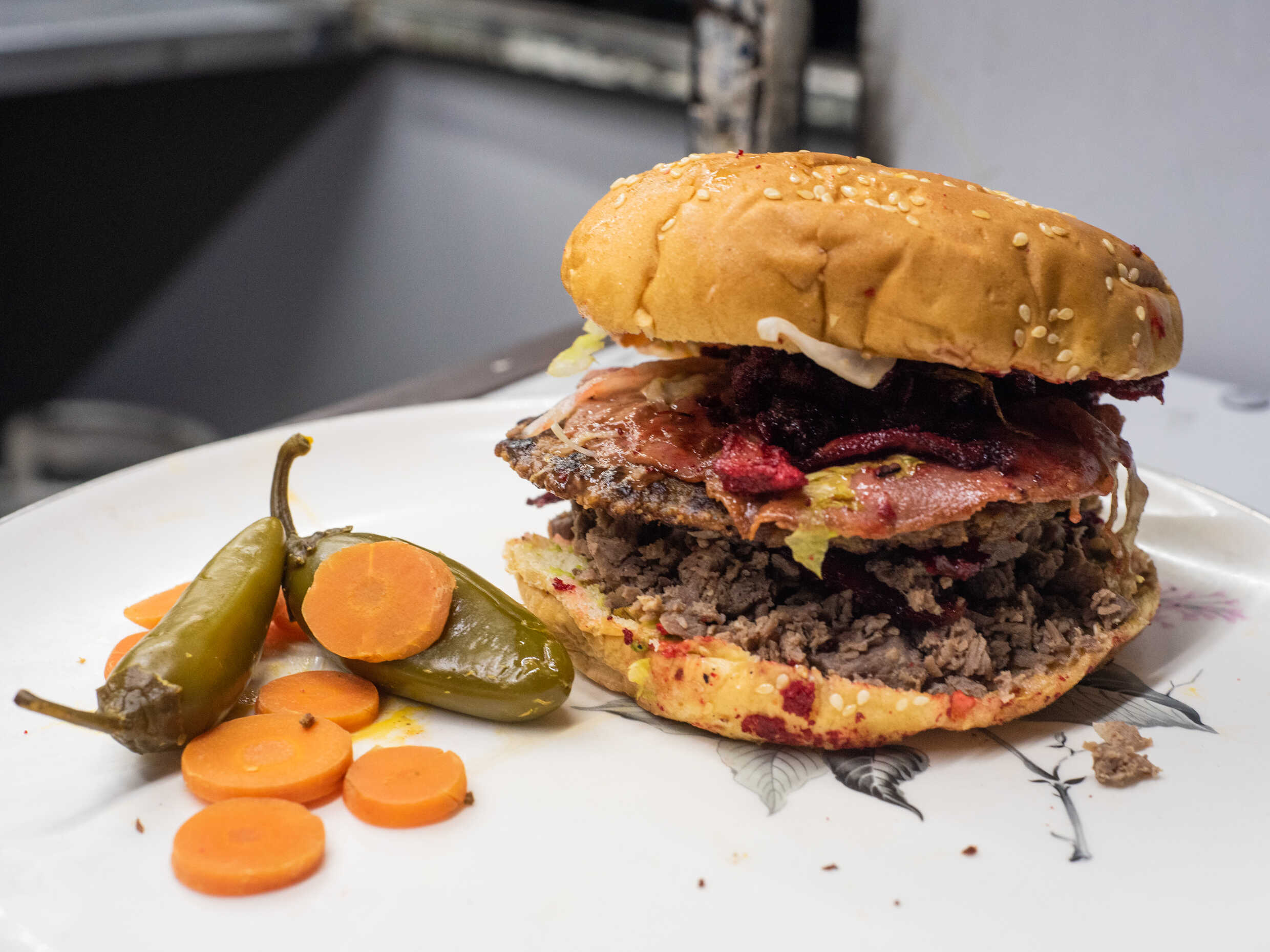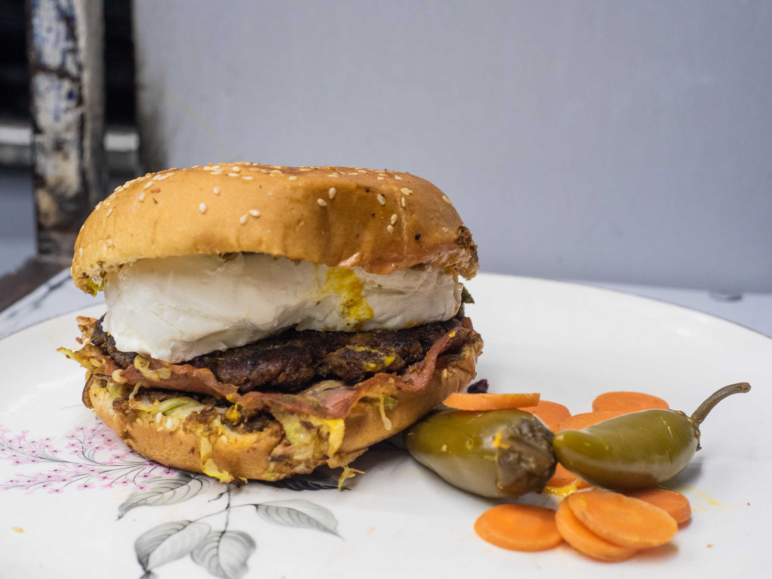 Ingredientes: Carne casera, aguacate, doble jamón, doble queso asadero, mayonesa, cátsup, chiles jalapeños.