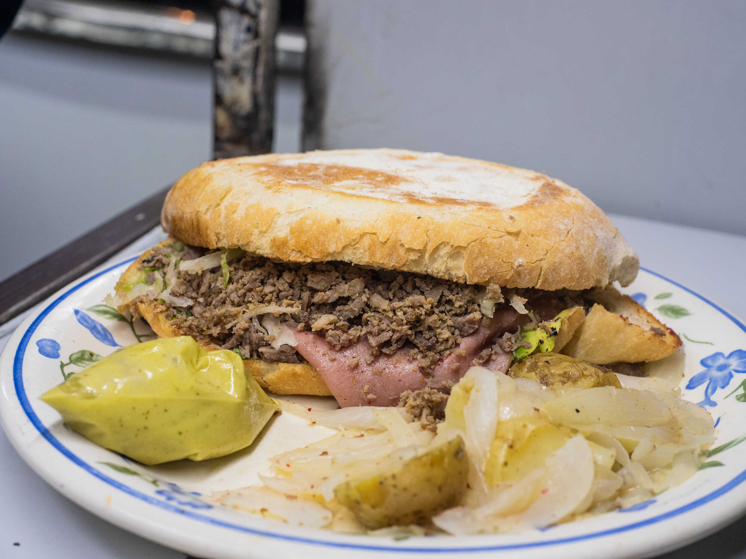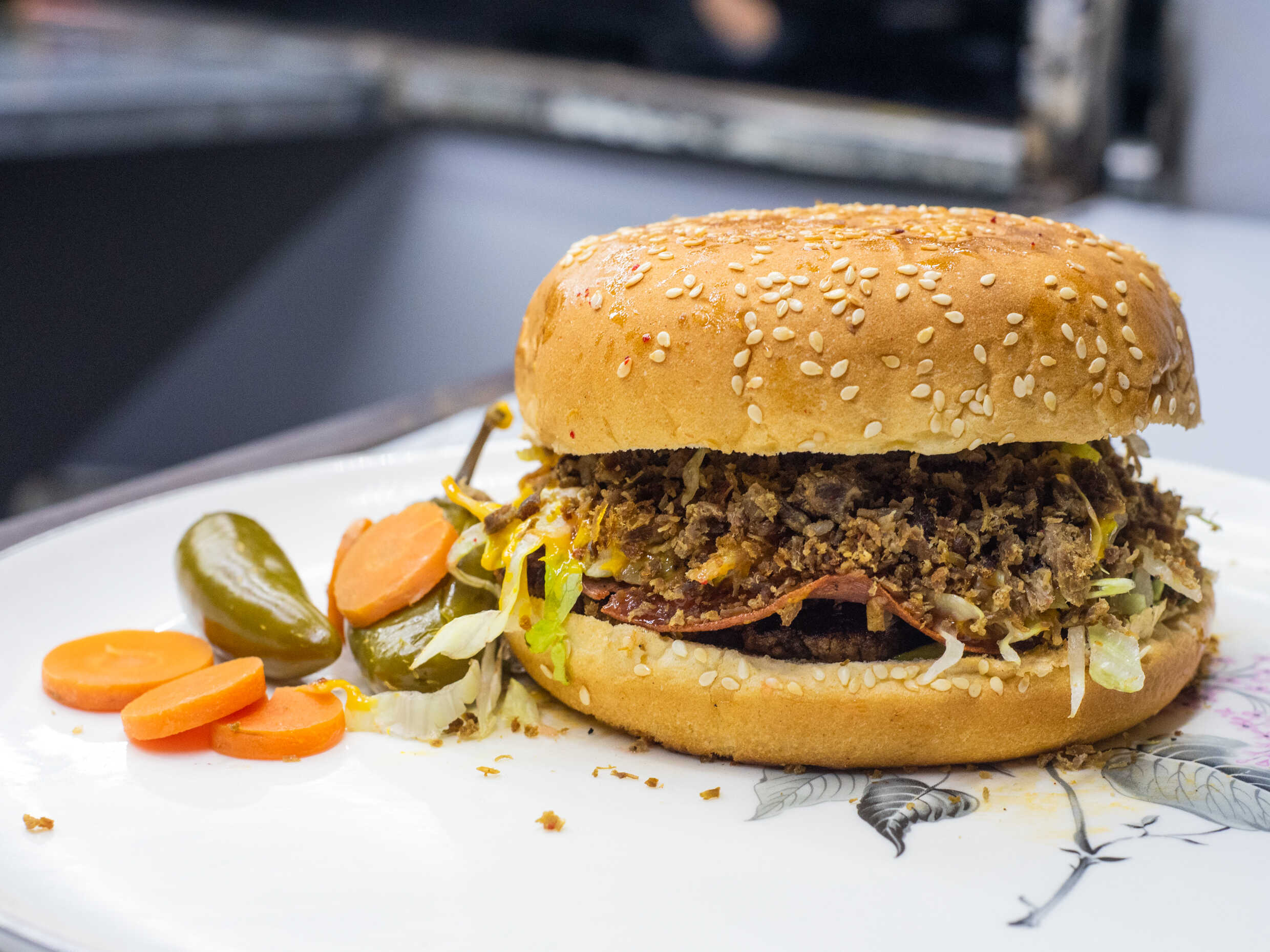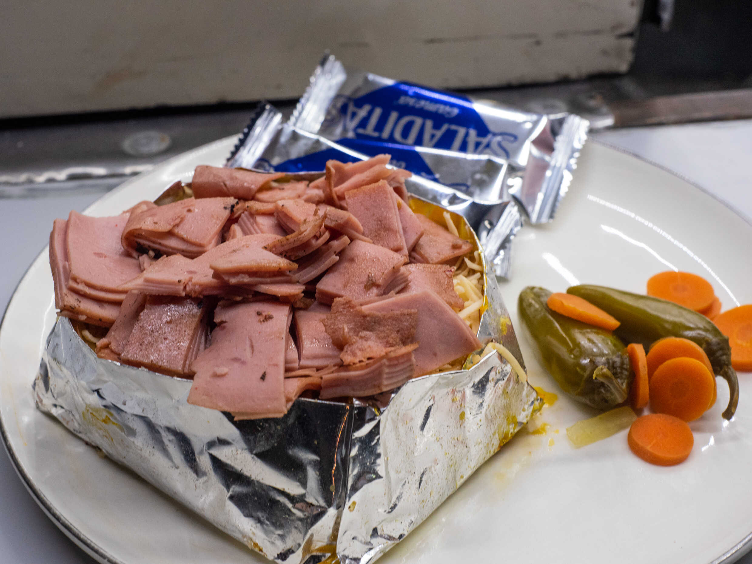Ingredientes: Carne casera, aguacate, doble jamón, doble queso asadero, mayonesa, cátsup, chiles jalapeños.