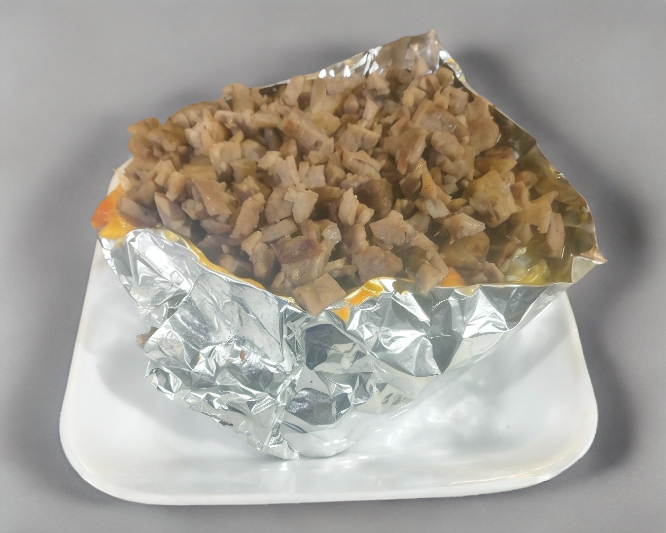 Trompo, bistec, queso amarillo, queso blanco, mantequilla.