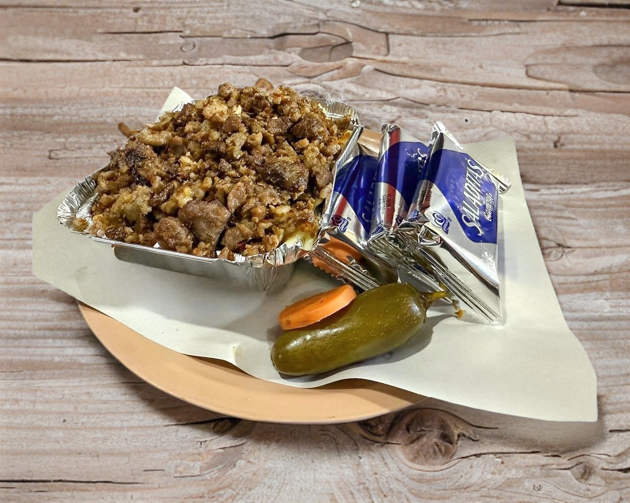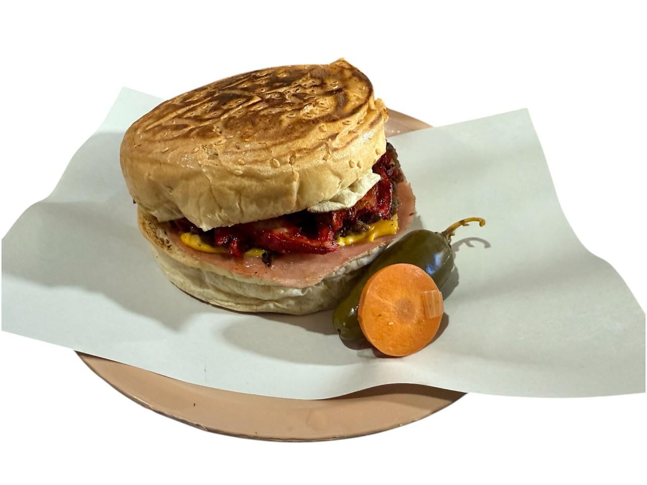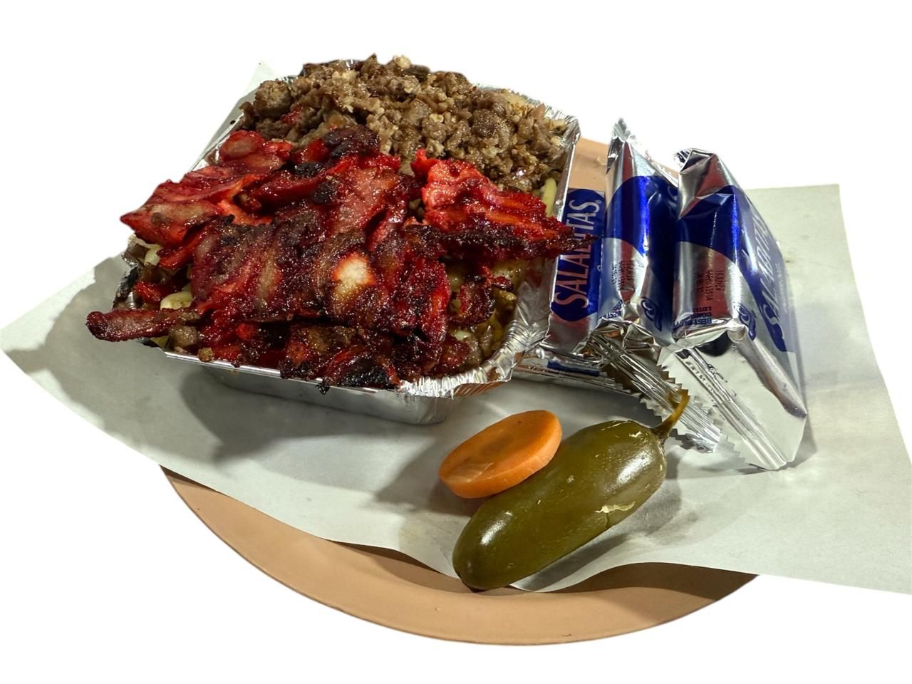 Mezcla de carnes con queso en tortilla de harina, versión grande.
