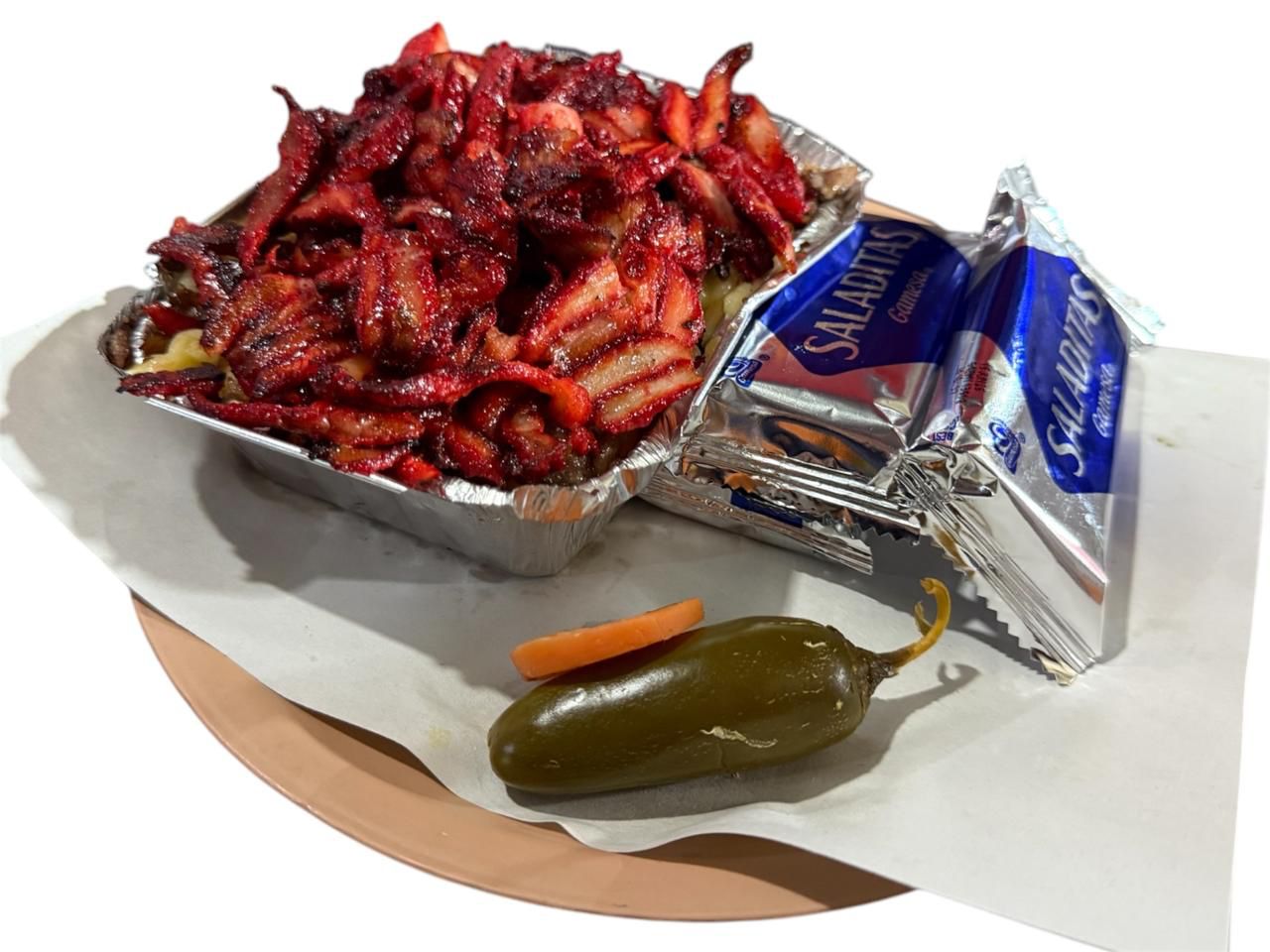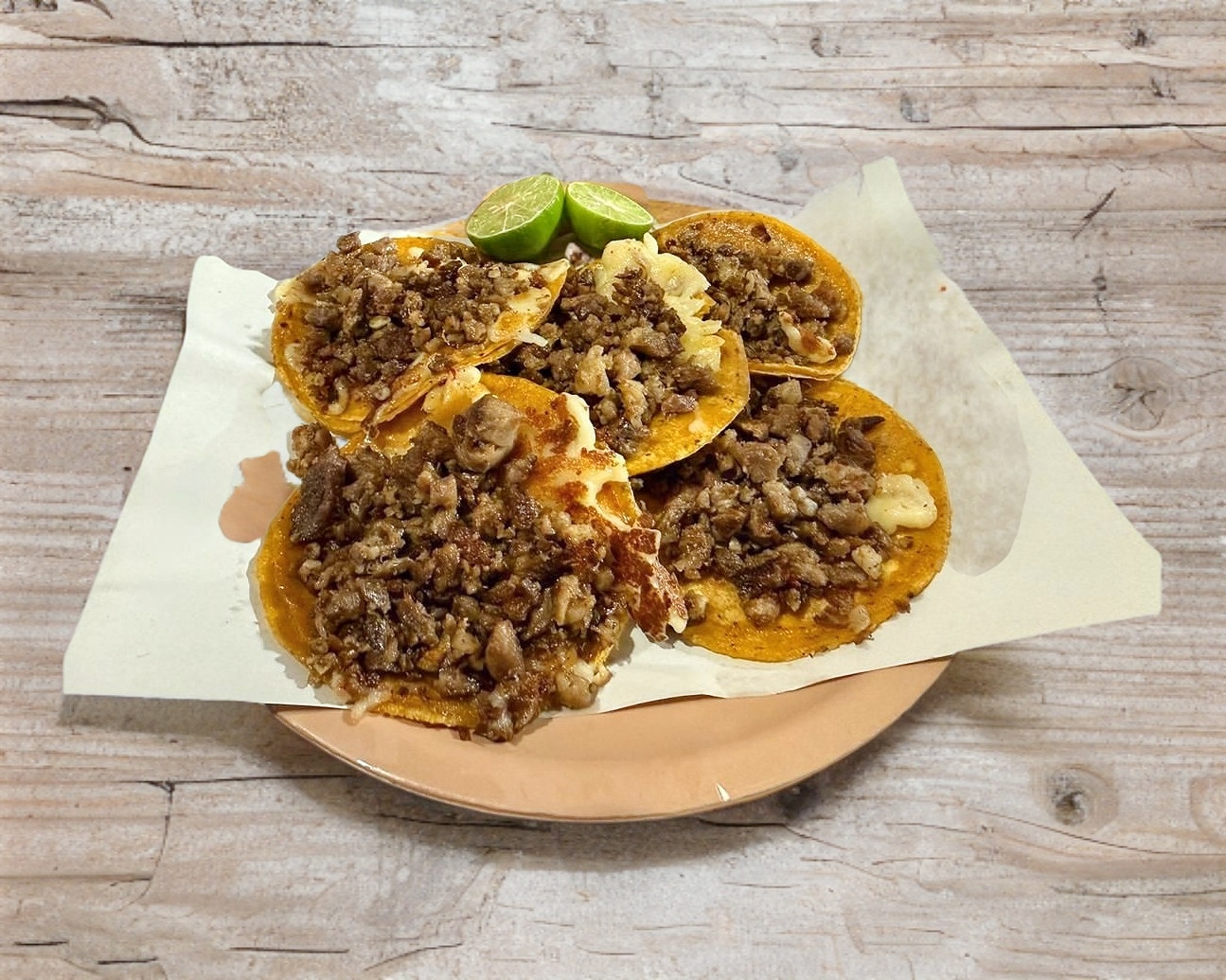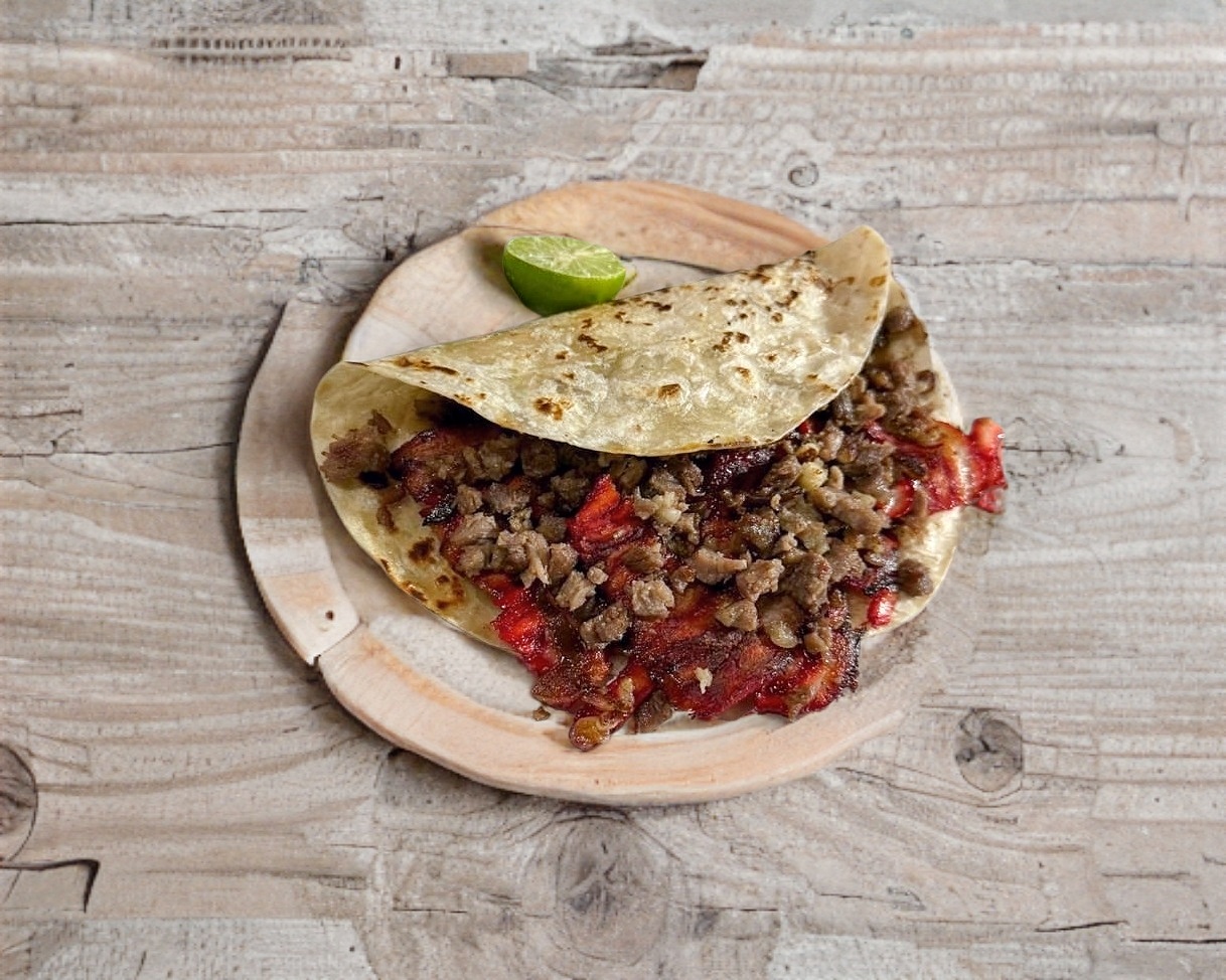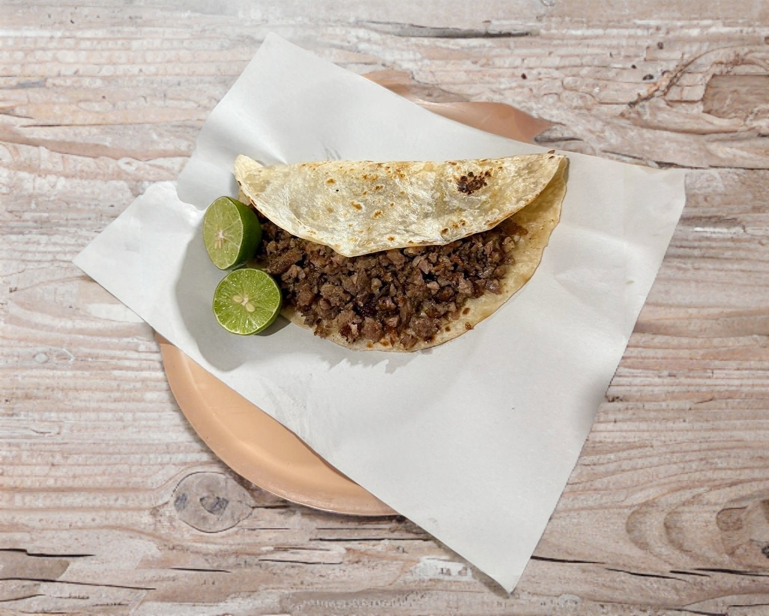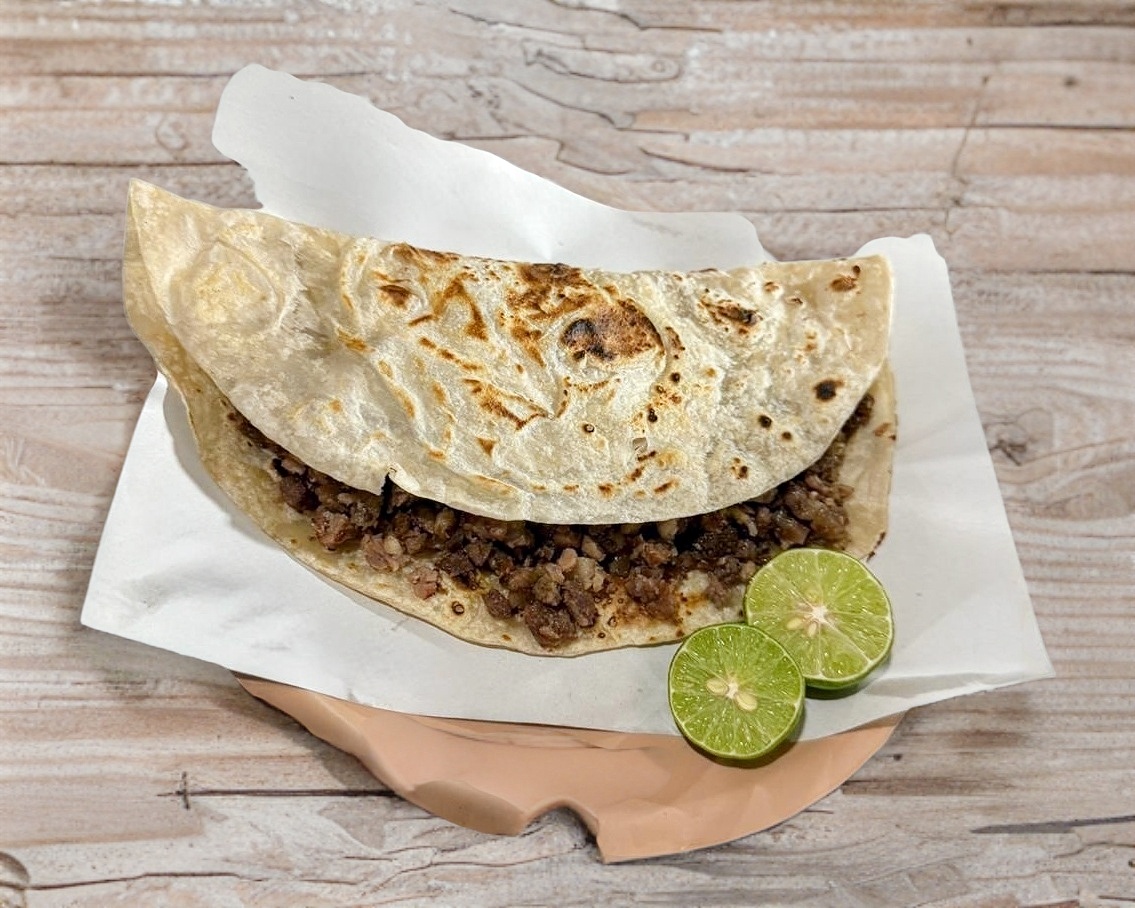 Mezcla de carnes con queso en tortilla de harina, versión chica.
