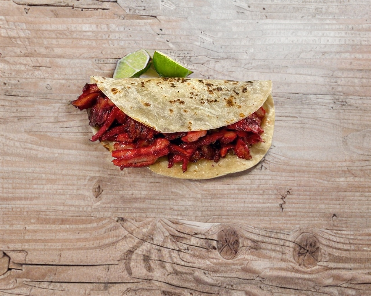 Quesadilla con trompo en tortilla de harina, tamaño chico.
