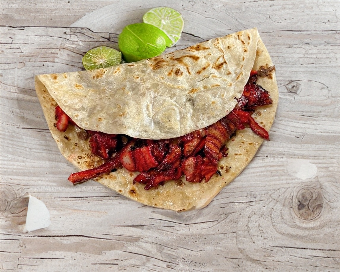 Quesadilla con trompo en tortilla de harina, tamaño grande.