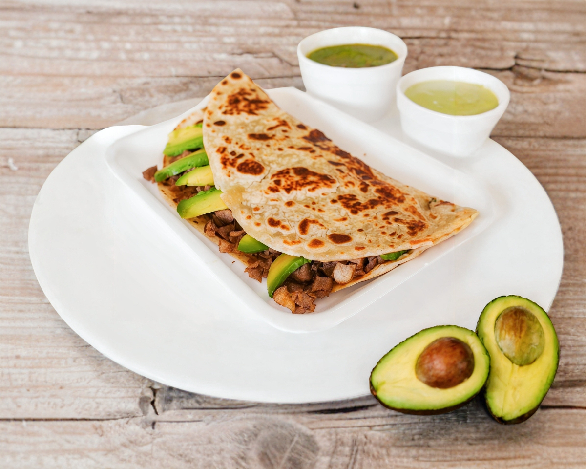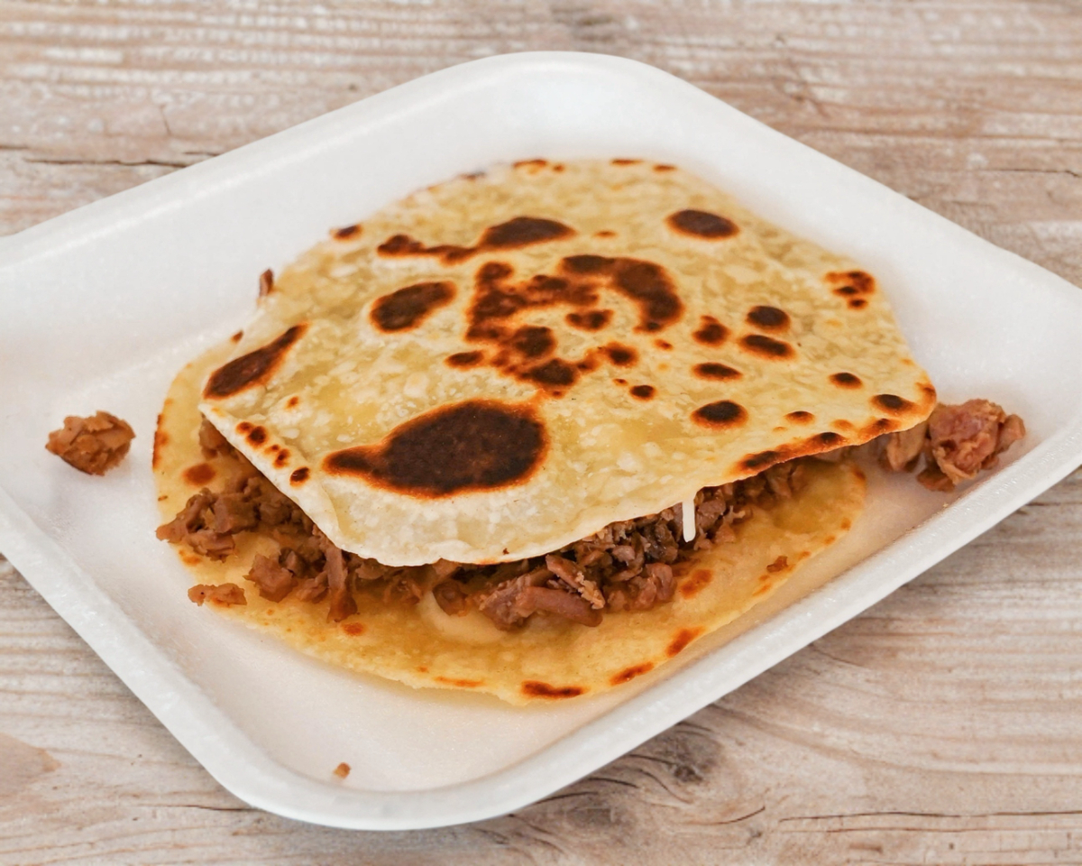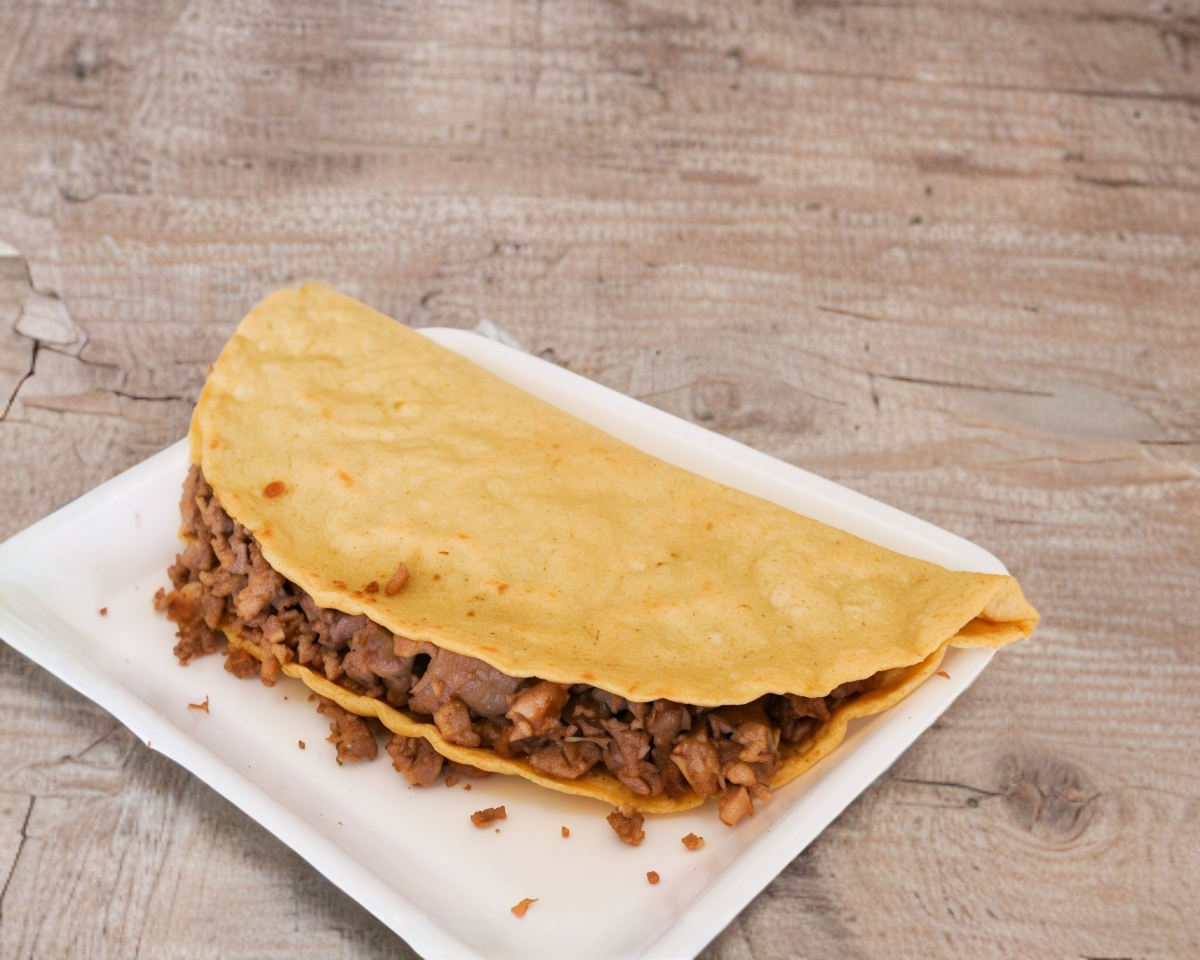 Sincronizada con queso y carne en maíz.