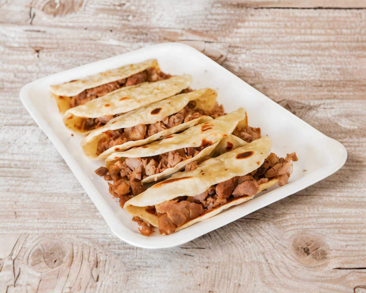 5 tacos con queso y carne.
