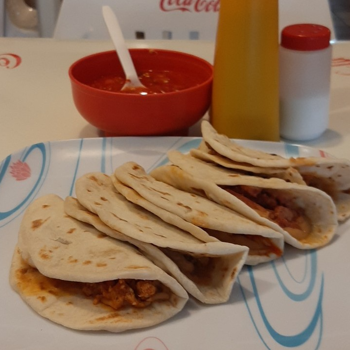 1 taco personal de picadillo, con tortillas de harina elaboradas a mano, incluye salsa