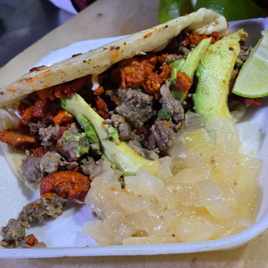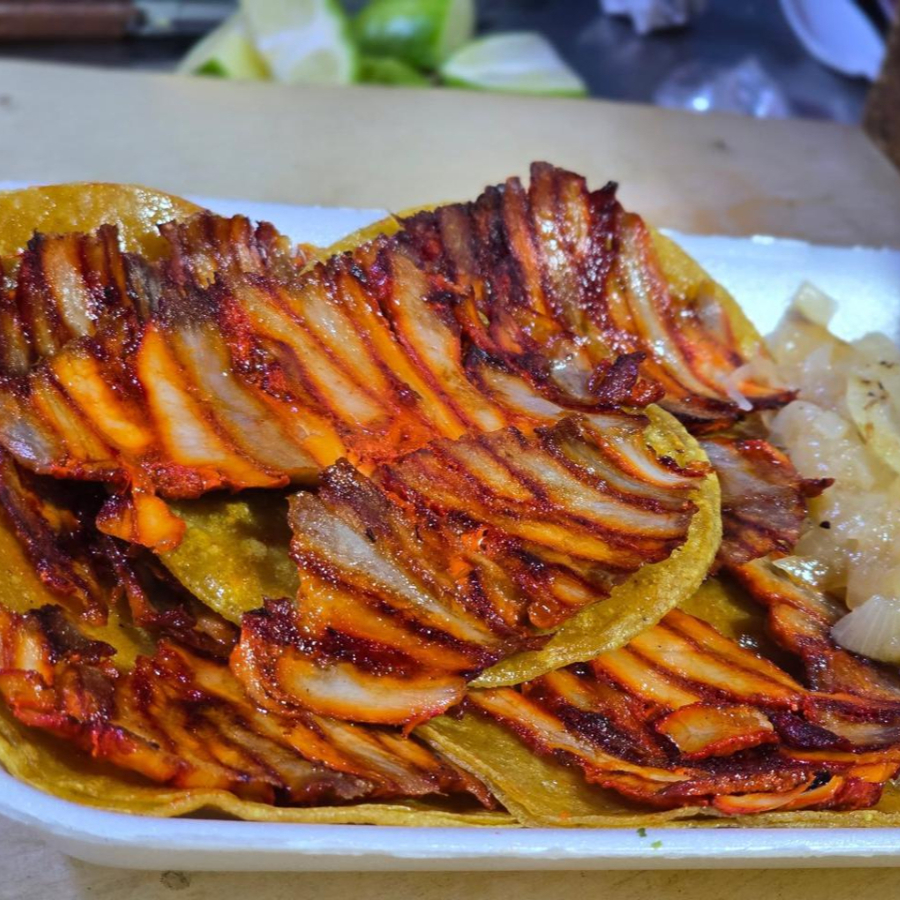 costra de queso, con carne a elegir, trompo, bistec o mixta.
