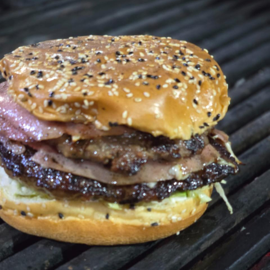 200 gramos de carne C/U, jamón y queso, pan Parrilero, aderezos, aguacate y lechuga.