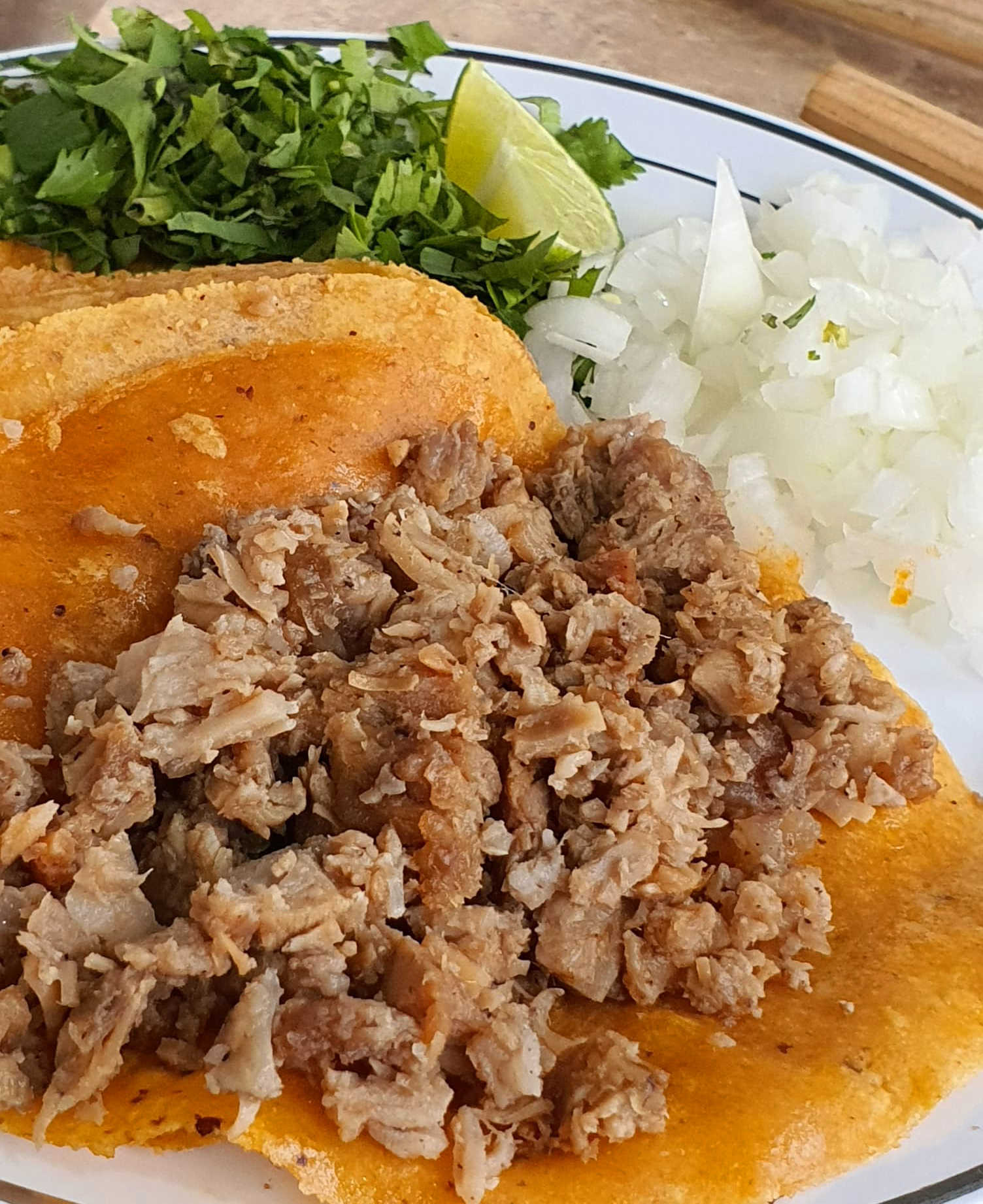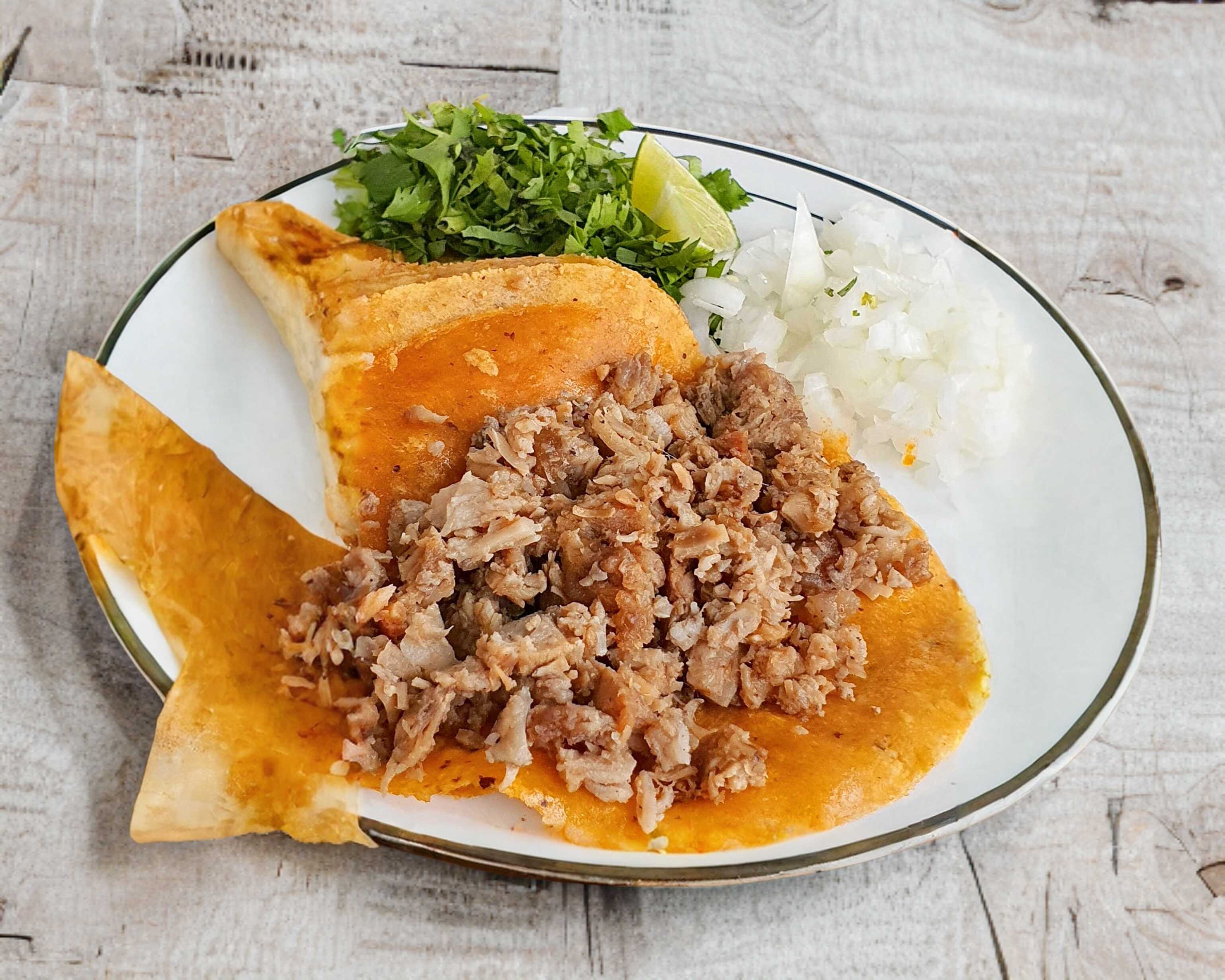 Rica deshebrada guisada. Pueden ser de harina o de maíz.