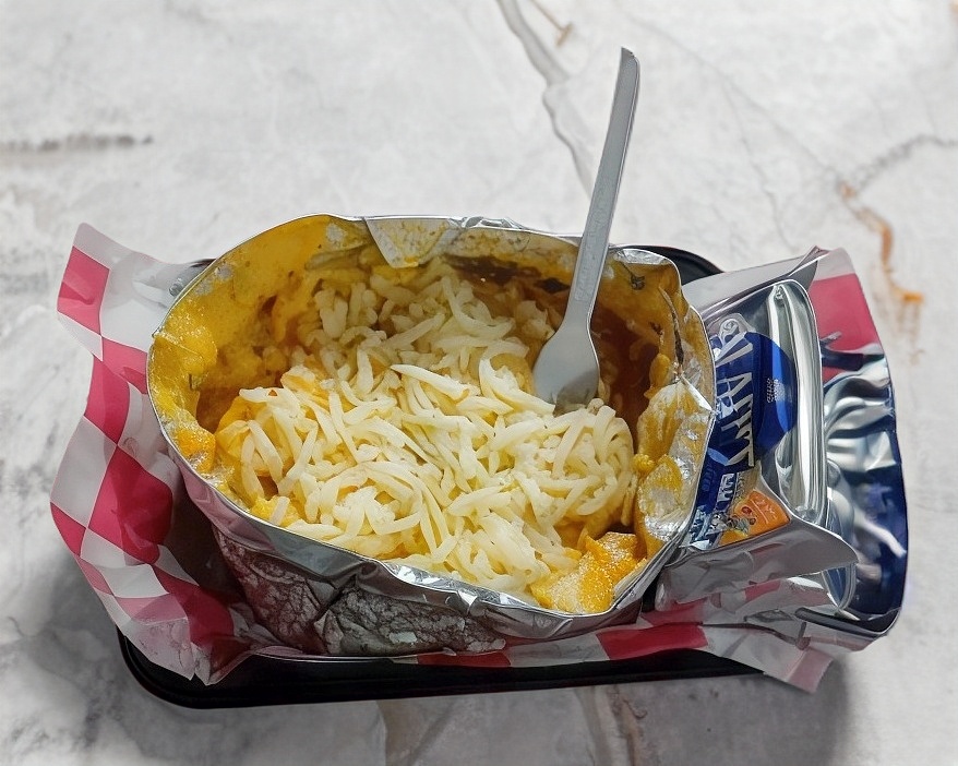 Papa asada sencilla: mantequilla, crema, queso amarillo líquido, queso asadero
