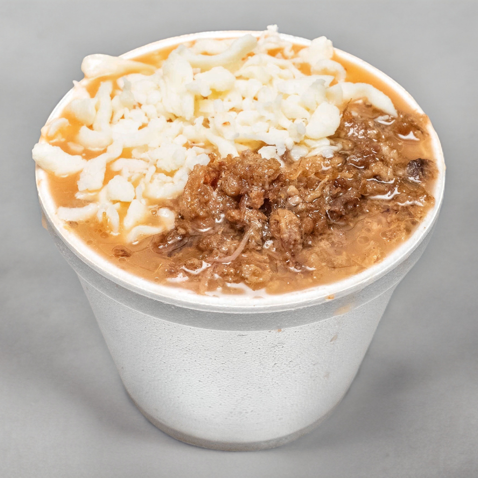 Carne de bisteck y queso en tortilla de harina. Acompañada de cebolla asada, papa, limones, salsas, cebolla y cilantro.