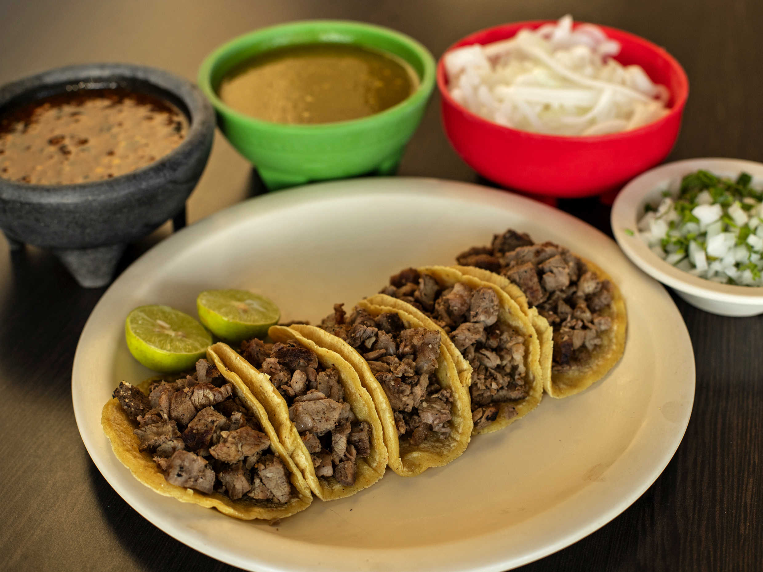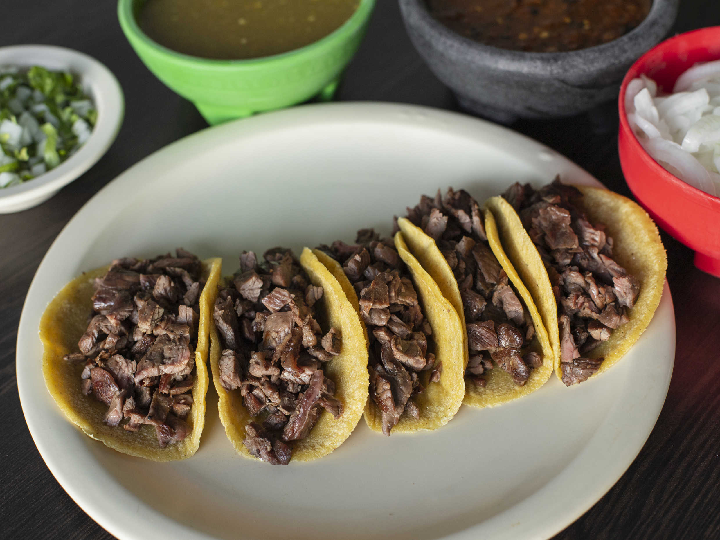5 Piezas. En tortilla de maíz recién hecha con sirloin.