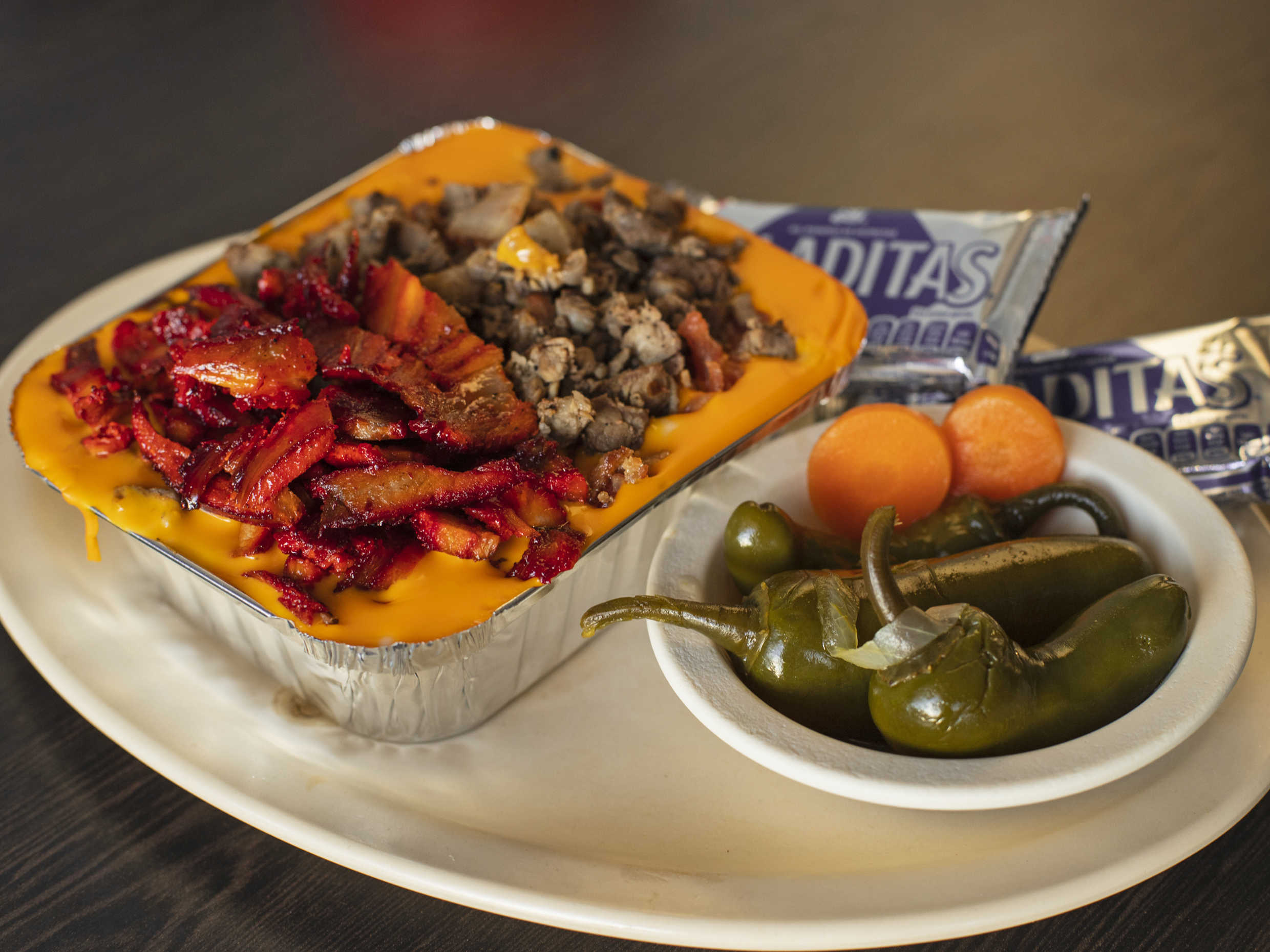 Queso asadero fundido con chorizo.