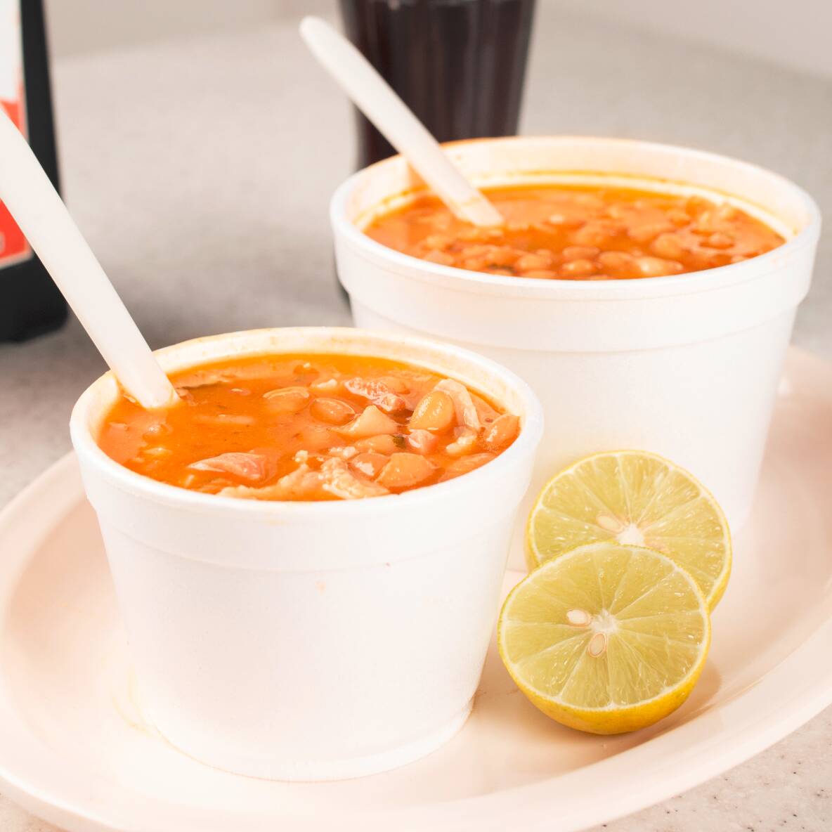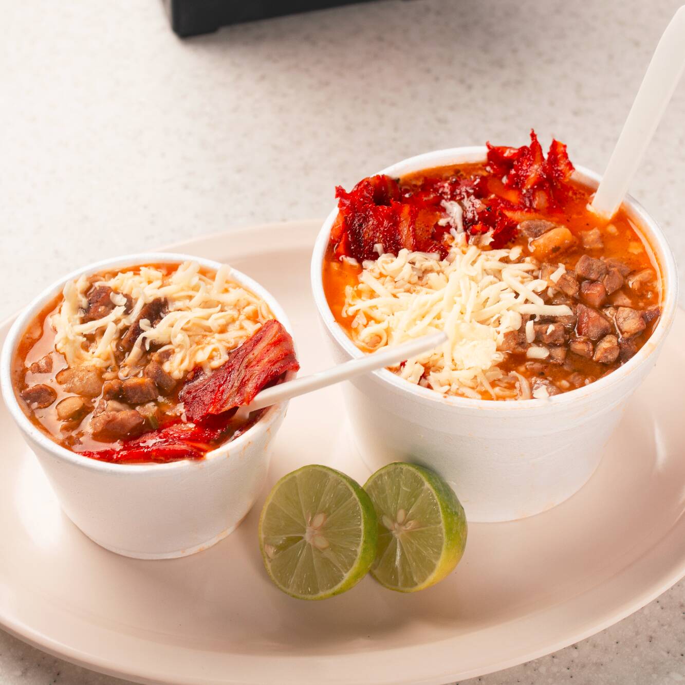 Disfruta de los 2 sabores unicos que nos distinguen, 3 tacos de bistec, 2 tacos de trompo. acompañado con cebolla guisada, salsas y limones.