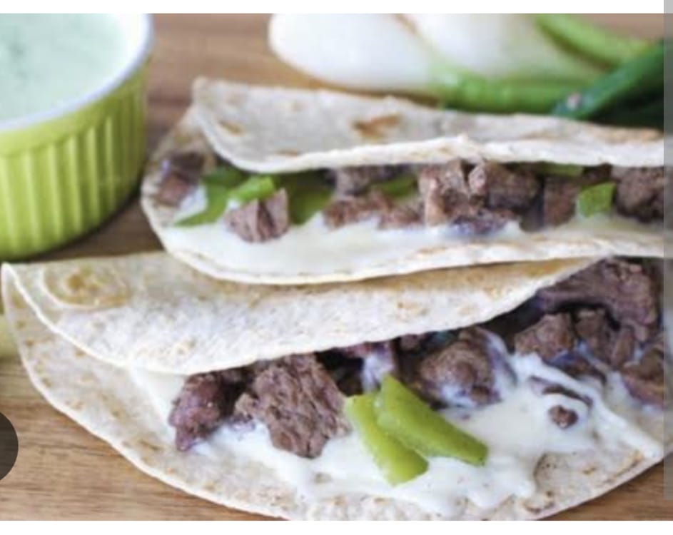 Deliciosa tortilla ,tostada en la parrilla con carne asada y queso chihuahua gratinado
