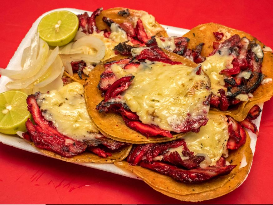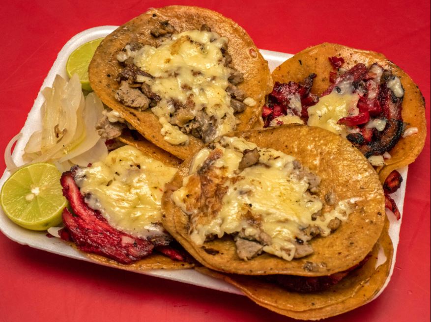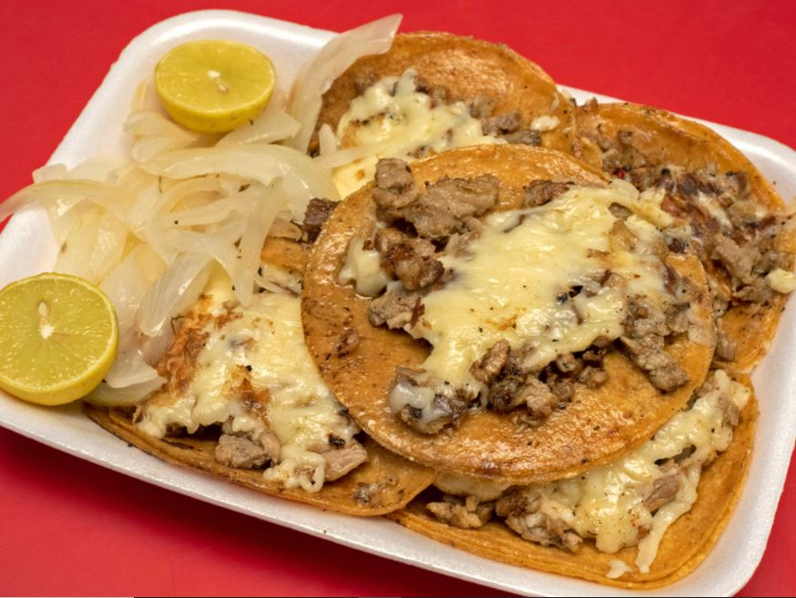 5 tacos de trompo en maíz con queso