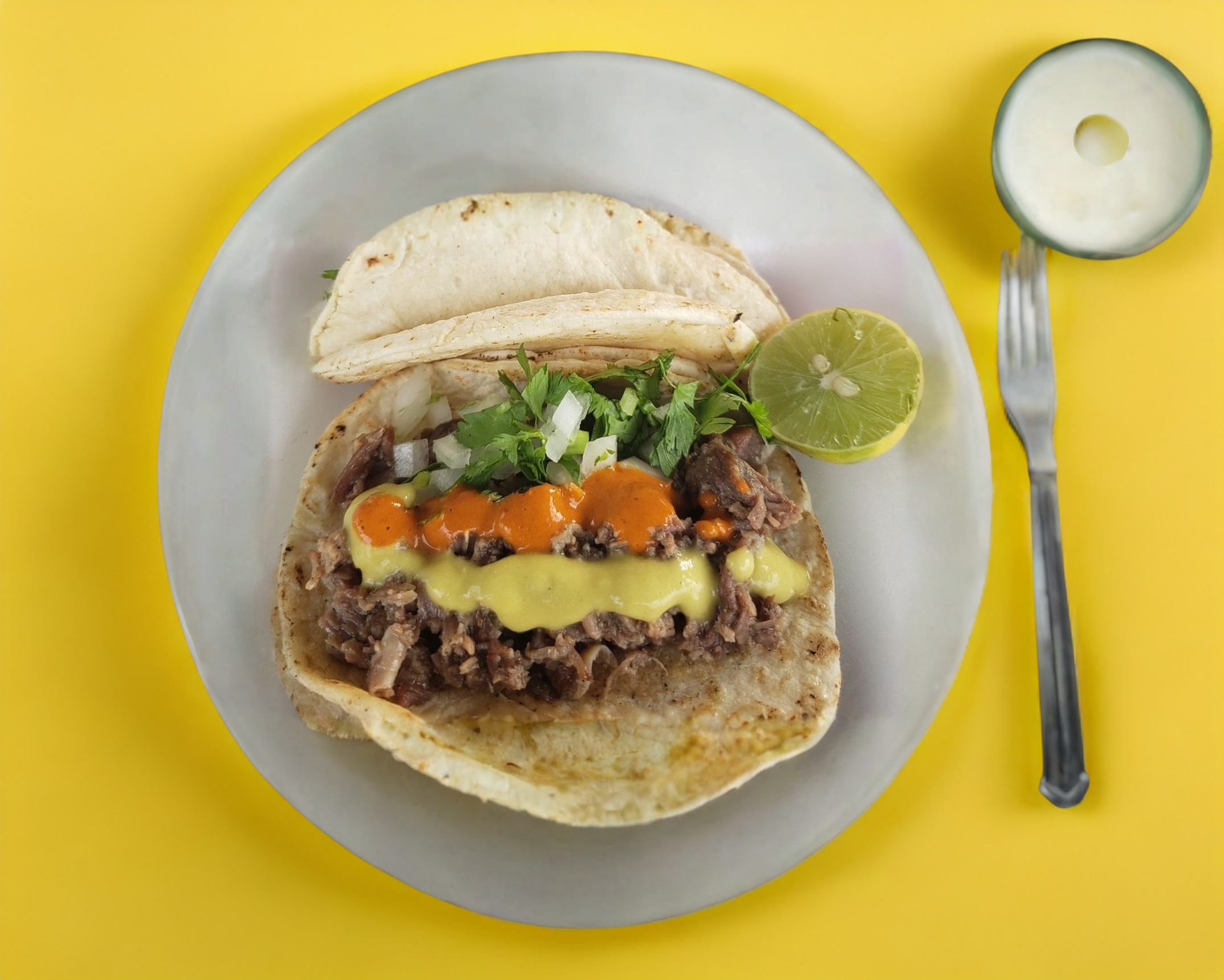 Incluye tortillas, cebolla con chile, 1 salsa y limón.