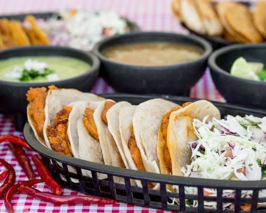 5 Tacos a elegir de tripa, salchicha polaca, chicharrón, carne asada, barbacoa, picadillo, discada y cochinita pibil.