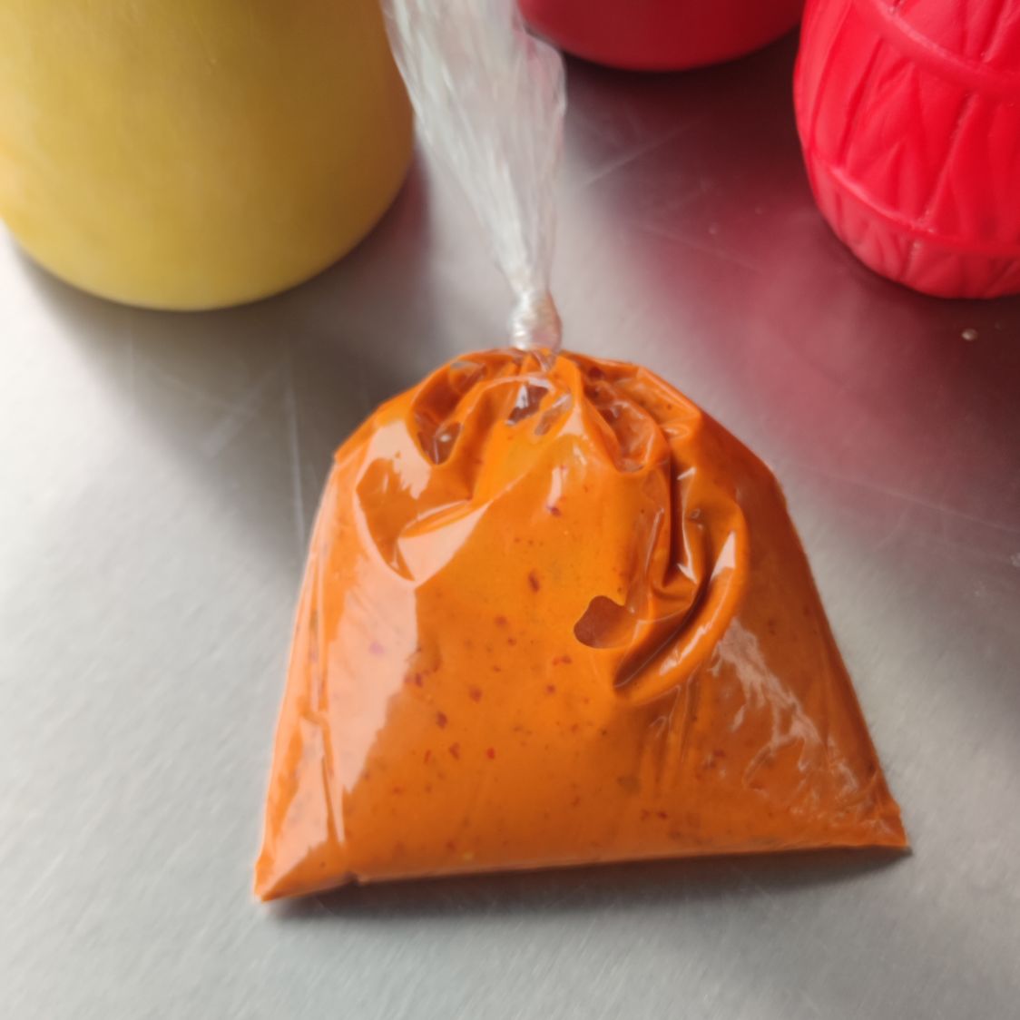 Rica salsa roja hecha de chile de árbol, cascabel y chile rojo.