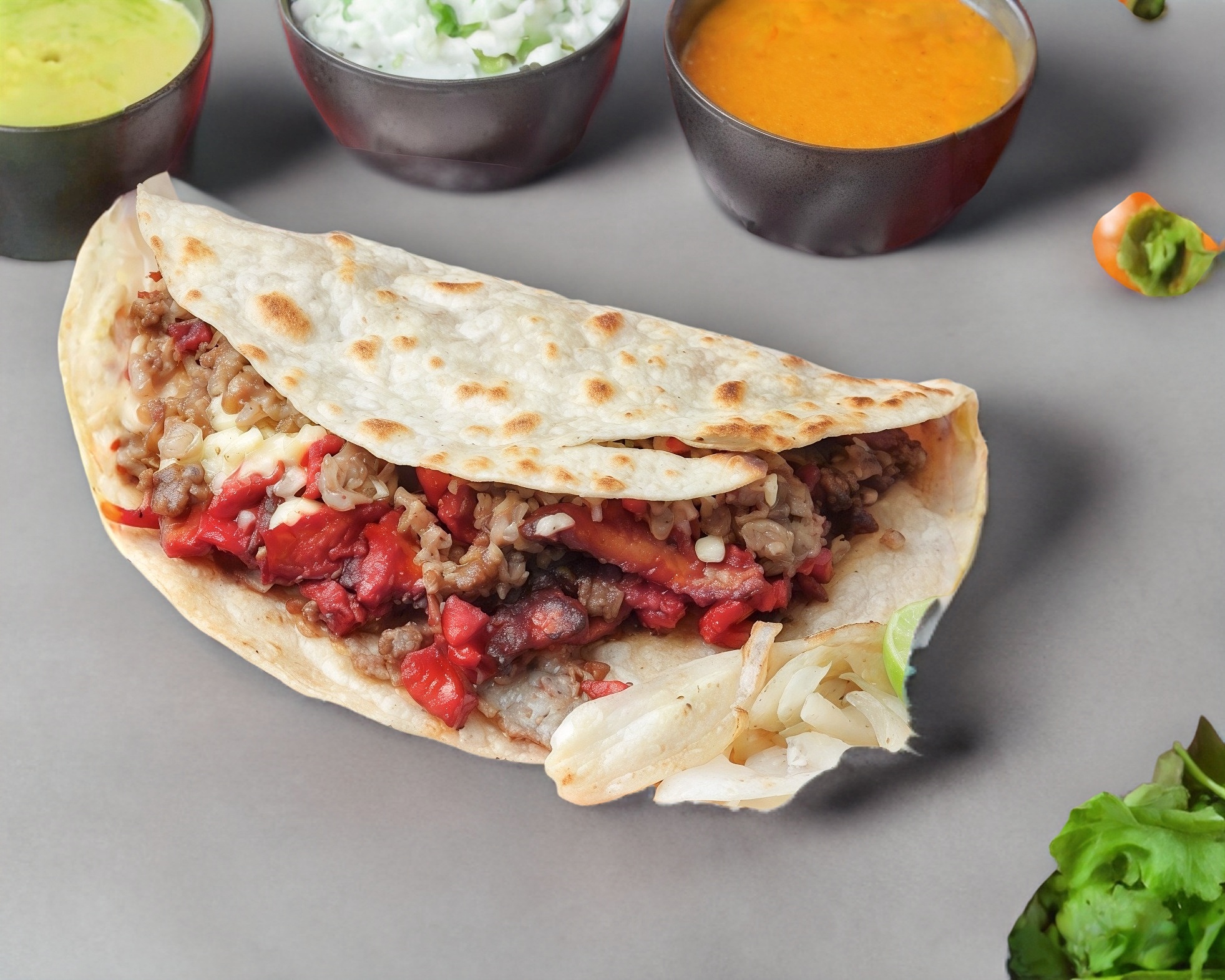 5 tacos mixtos acompañados de salsa cebolla cilantro y limone
