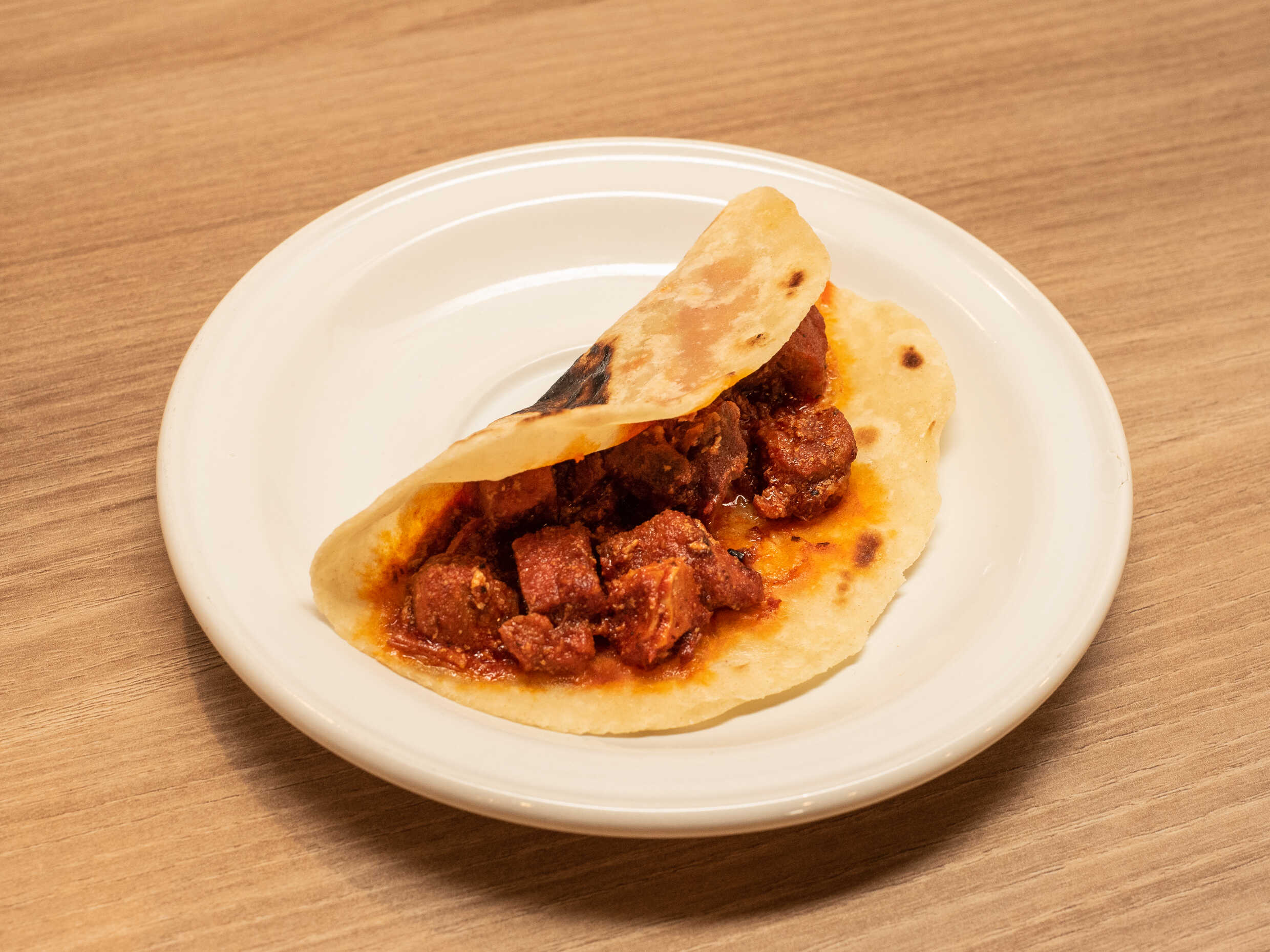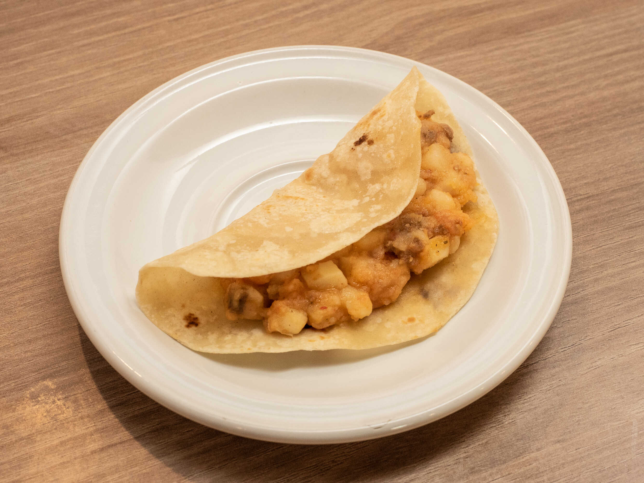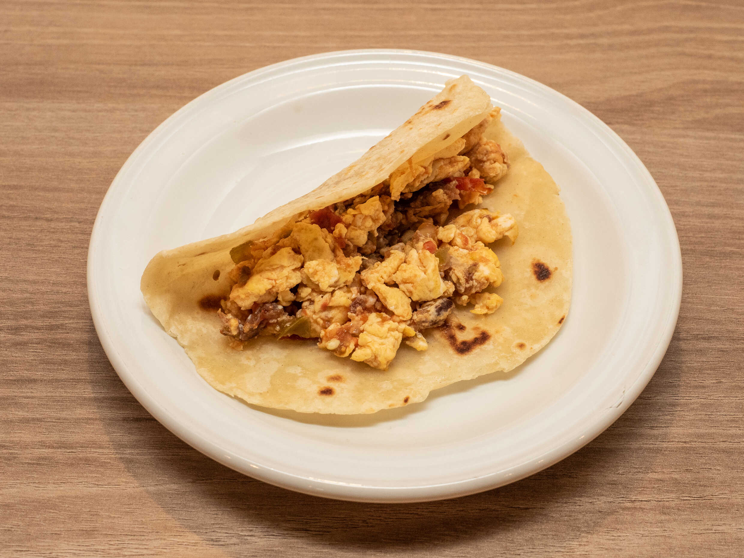 Taco de Carne Asada: tortilla de maíz o harina tipo 9, carne asada, verdura, cebolla asada, salsa, limón.