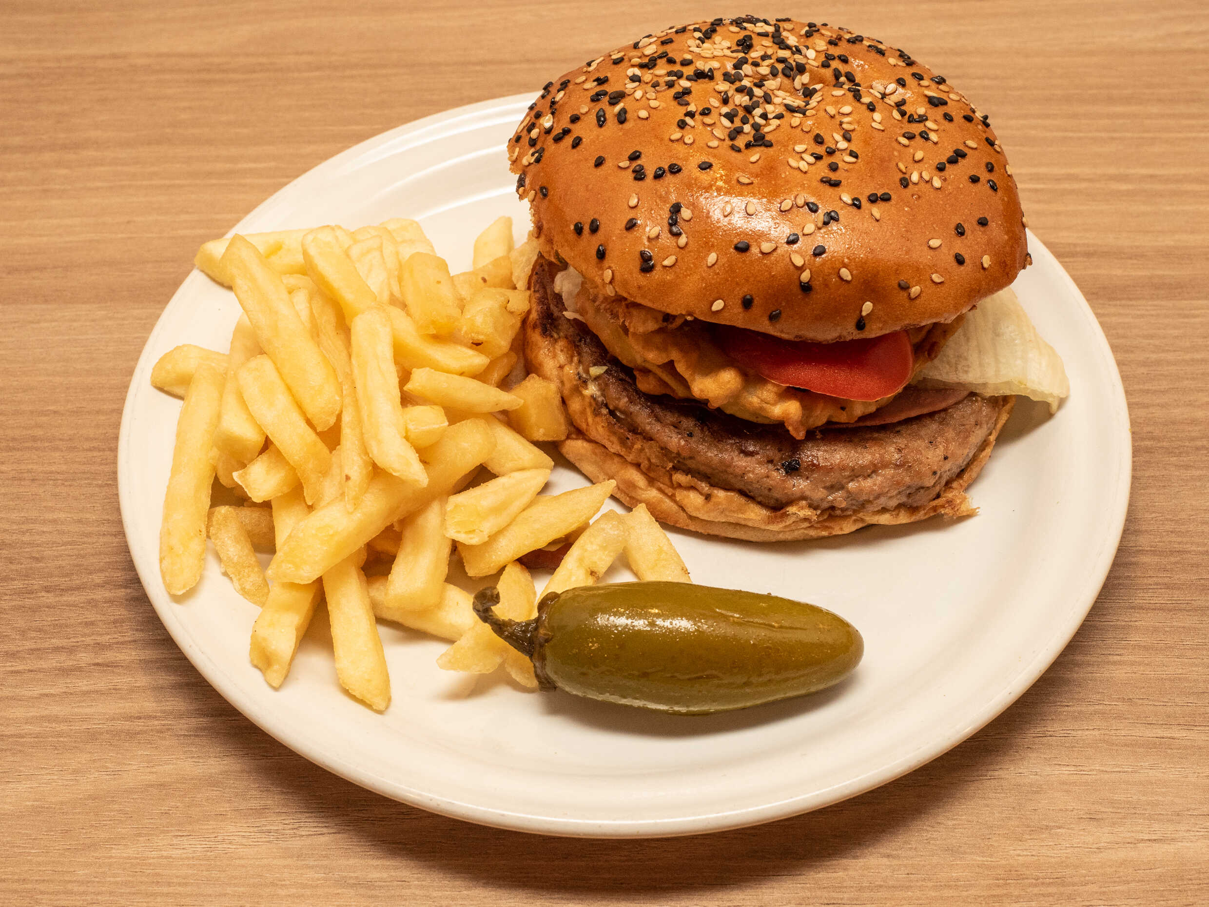 Carne de arrachera, con 100grs de boneless naturales, tomate, lechuga, queso y jamon
