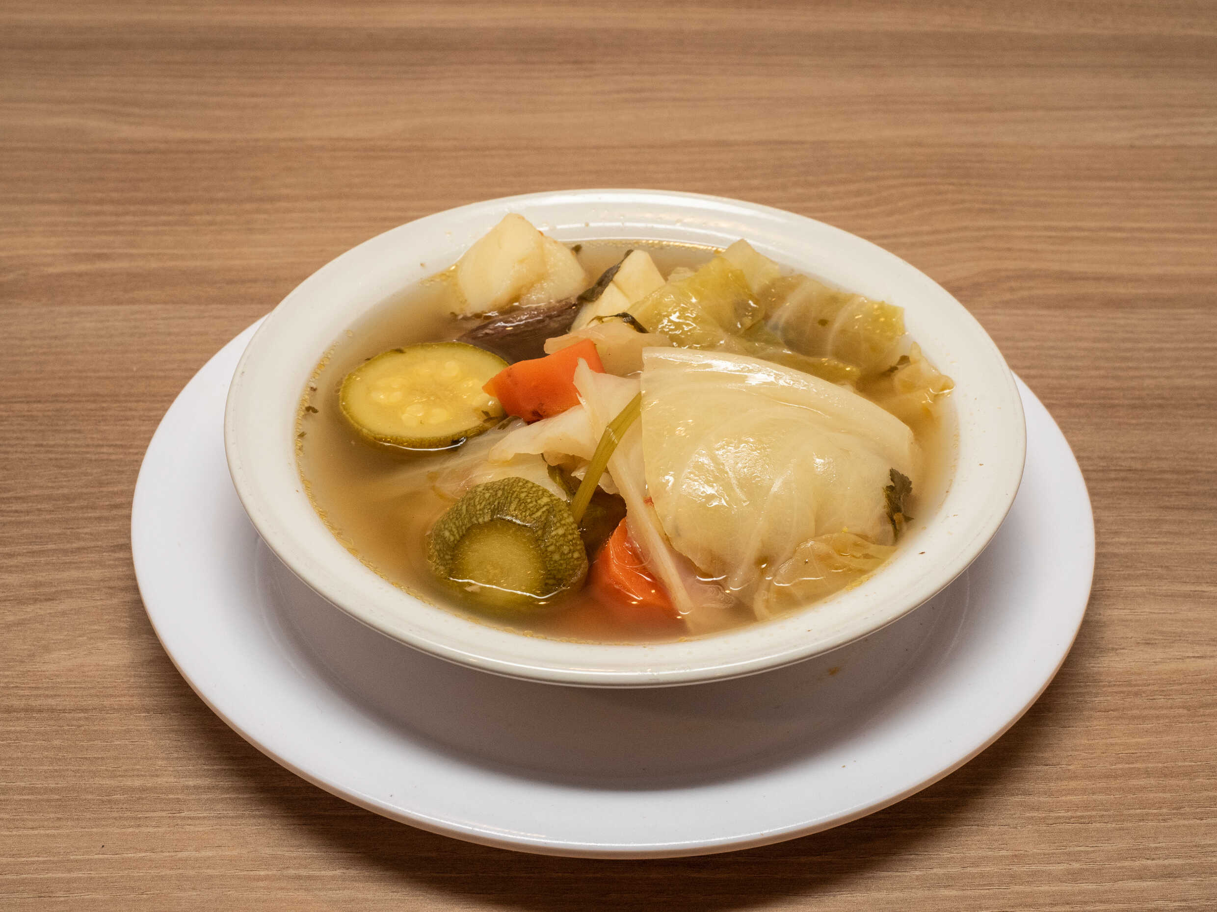 Caldo de Res (1/2 LT) acompañado de Arroz Rojo y Tortilas de Maiz