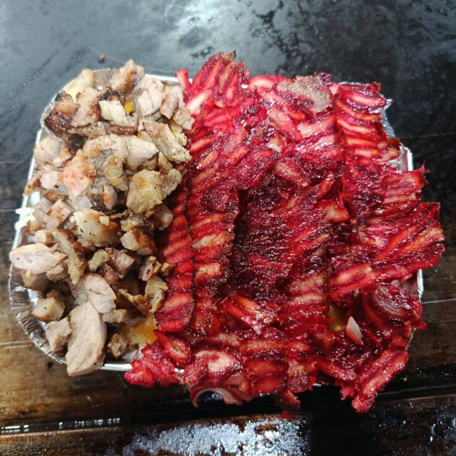 Papa, queso amarillo, queso asadero, trompo y bistec
