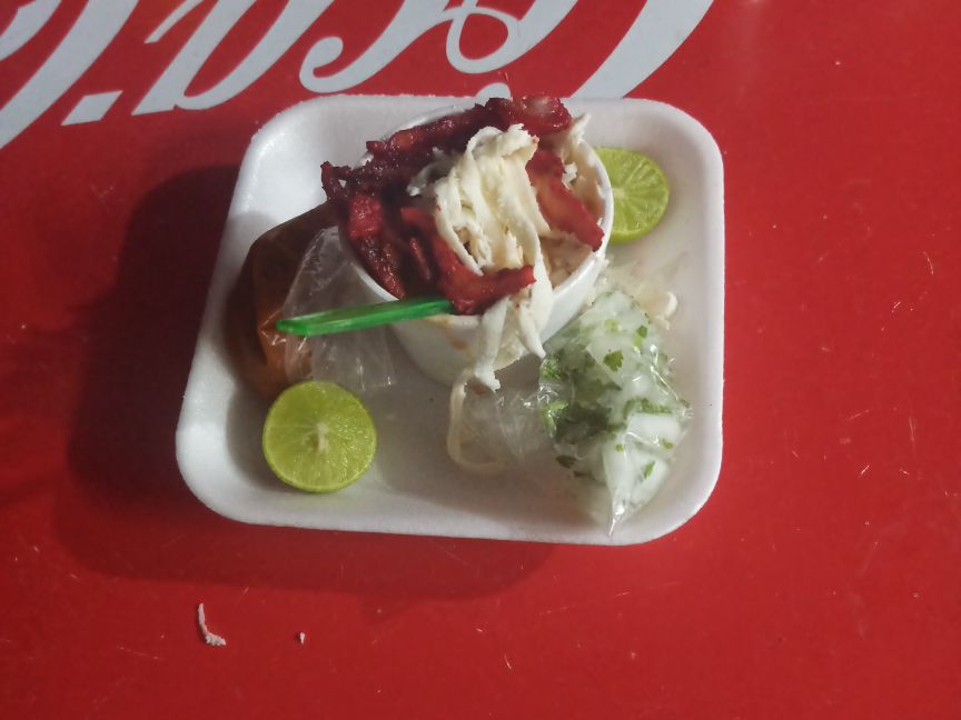 Inclulle salsa cebollla picada .limon y tortilllas .aproxima comida para 2 personas