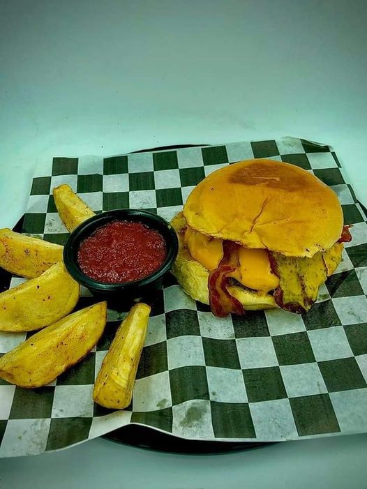 Hamburguesa Sencilla: pan horneado diariamente, carne de aprox. 100 g, aguacate, lechuga, aderezos, jamón y queso.